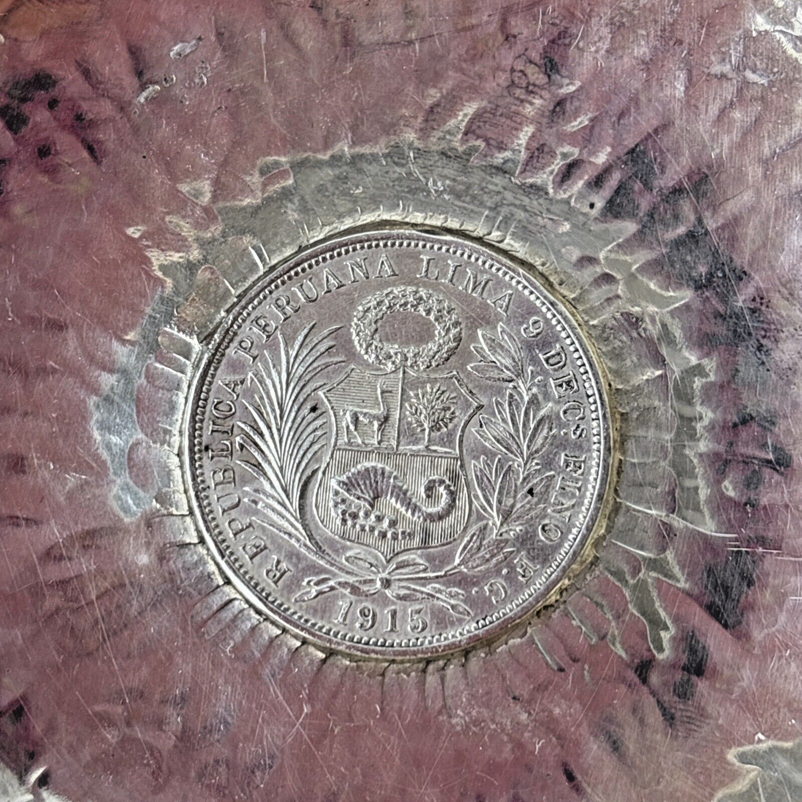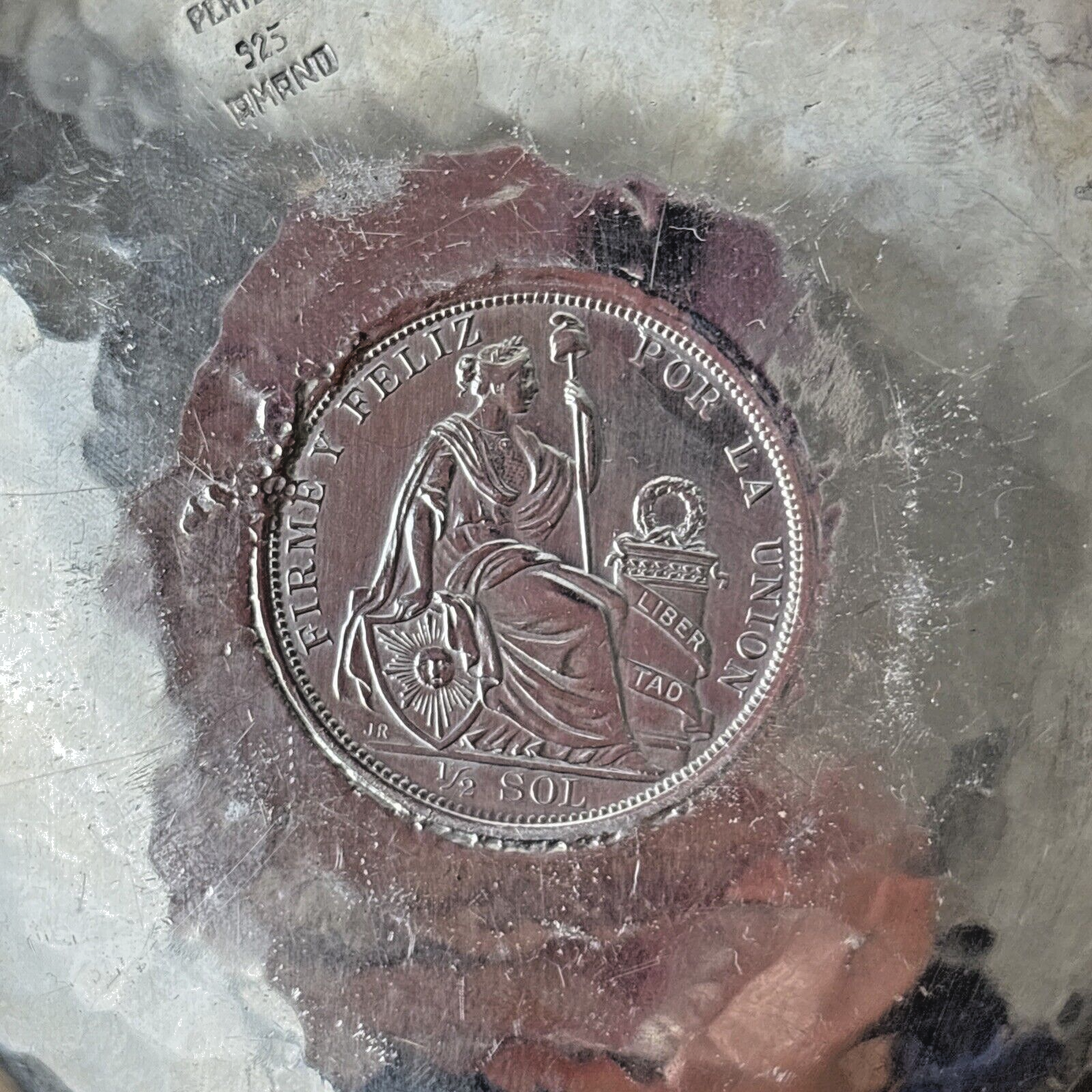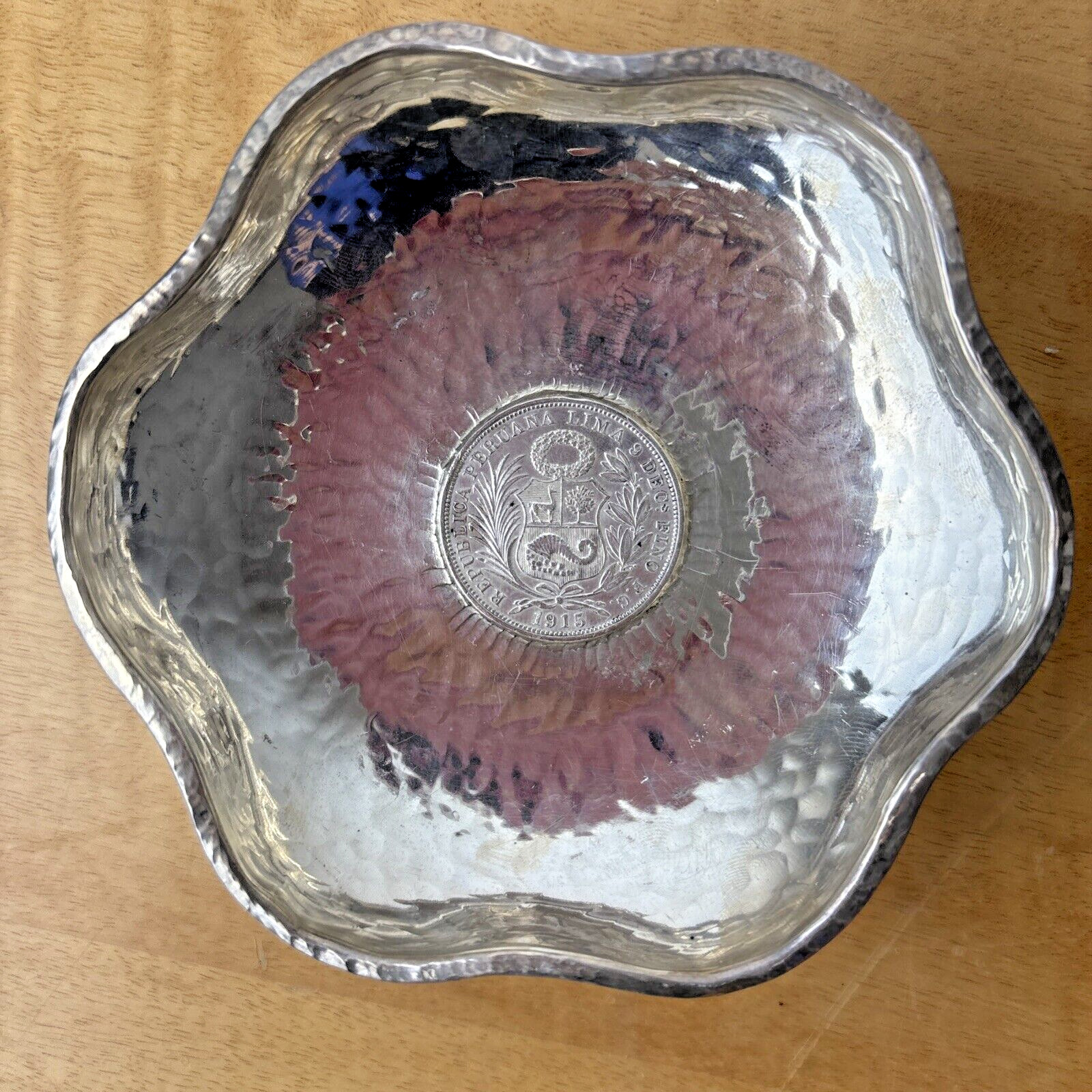 Hammered Silver 925 Bowl, Commemorative Coin of Peruvian Republic