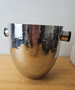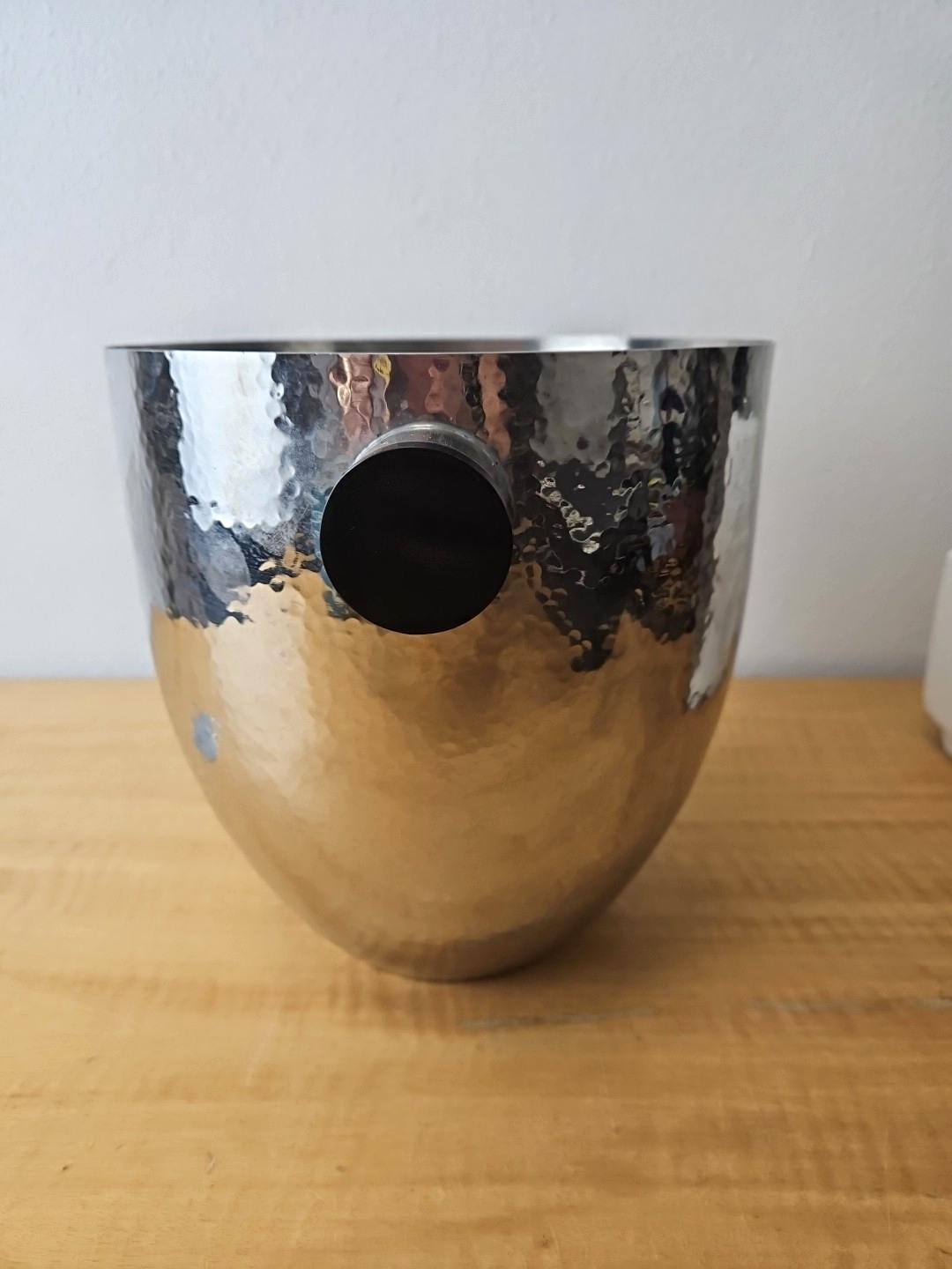 Hammered Stainless Steel Ice Bucket with Black Resin Handles