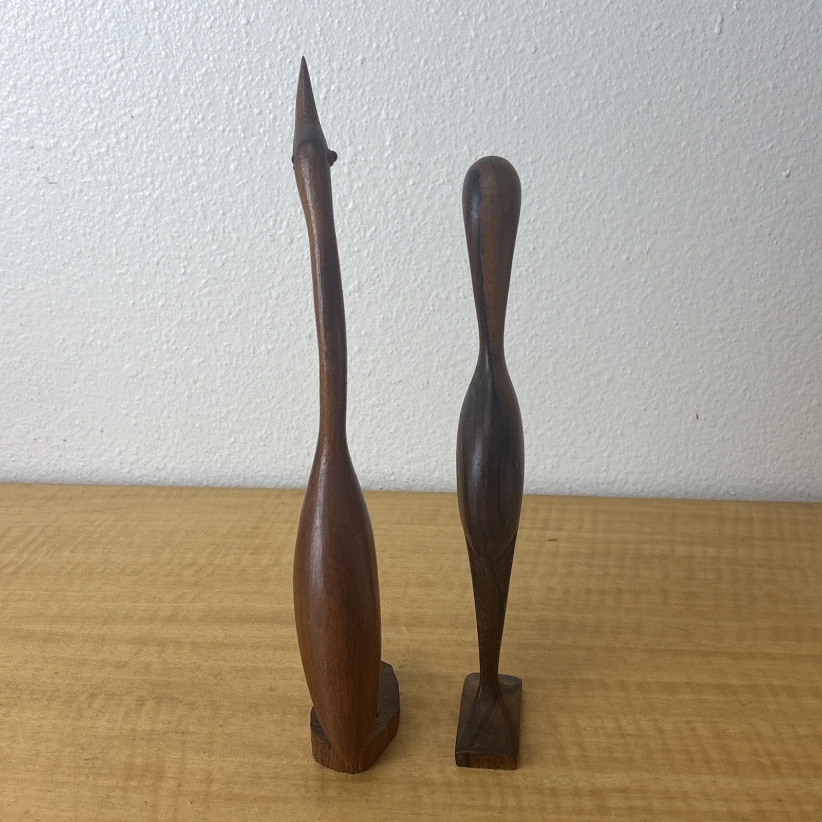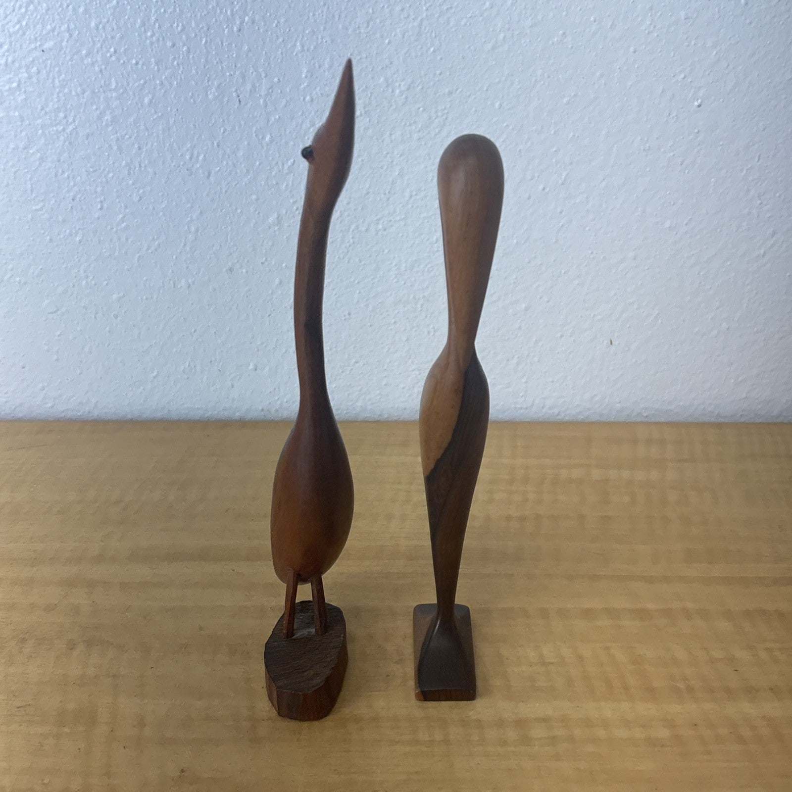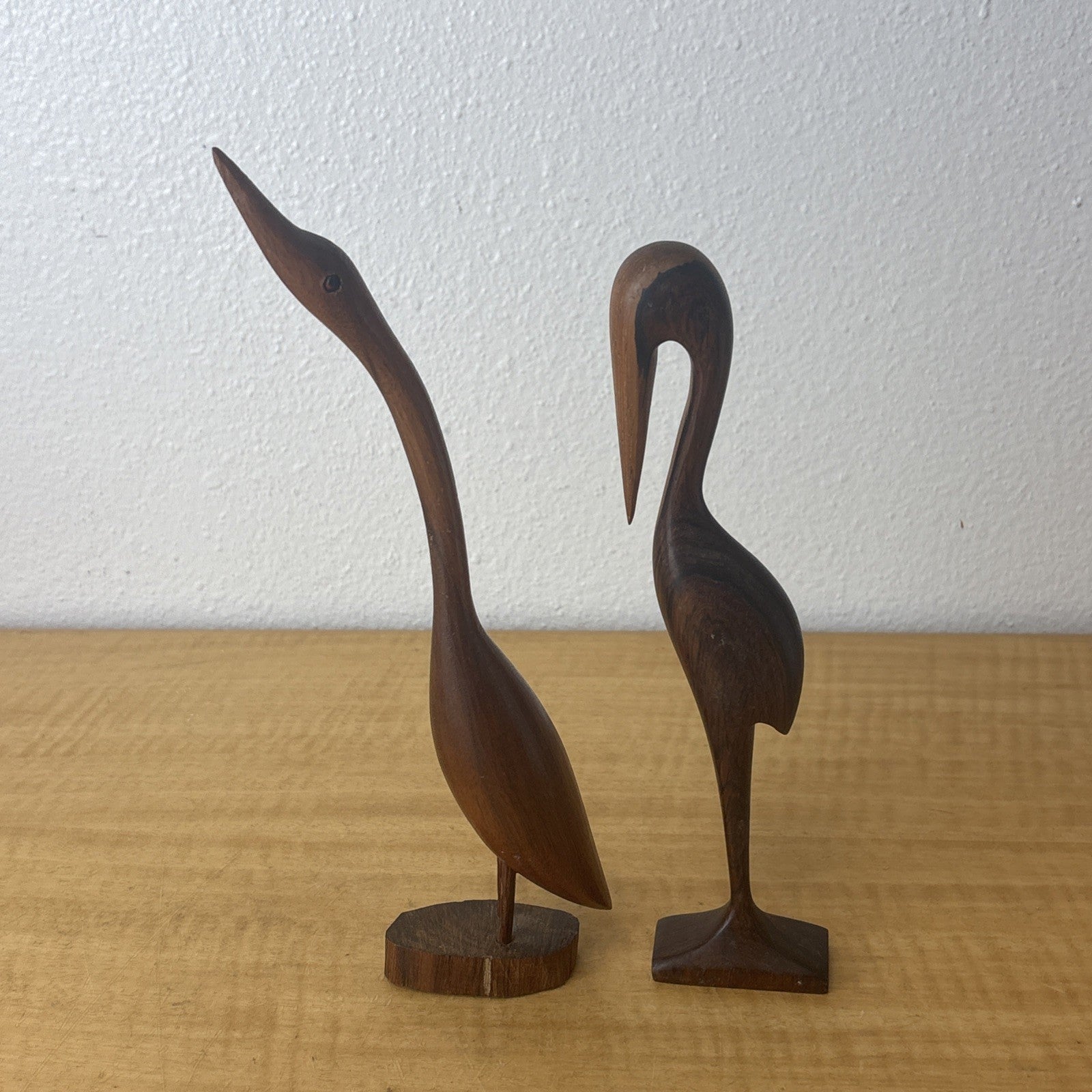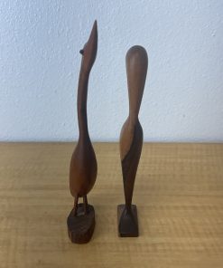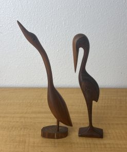 Hand Carved Wood Egret Bird Heron Statue Set of 2
