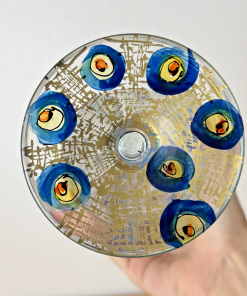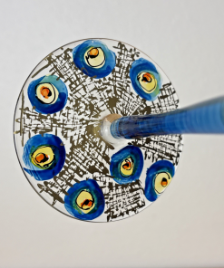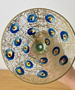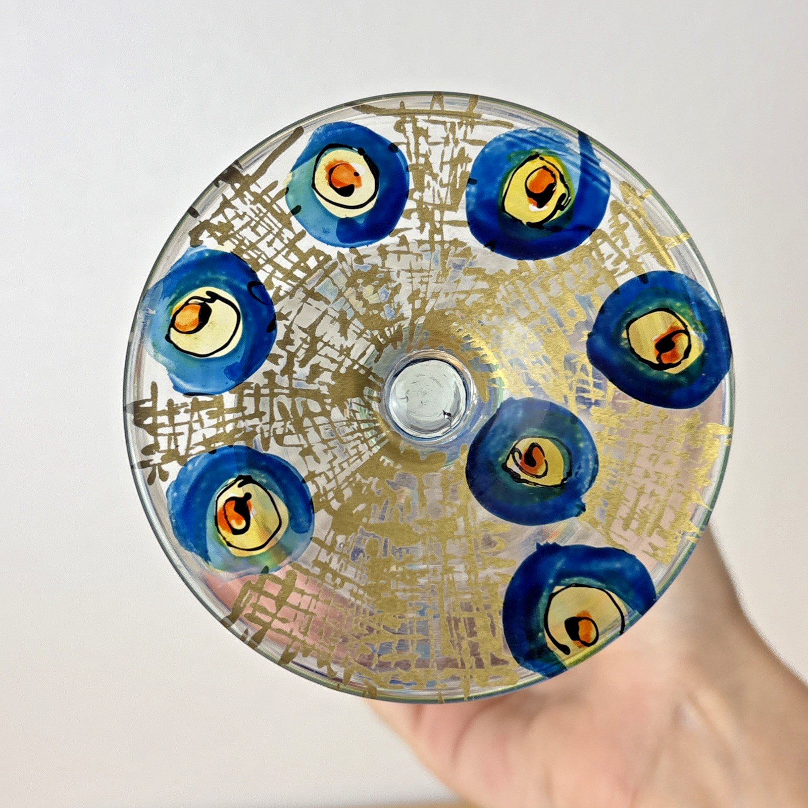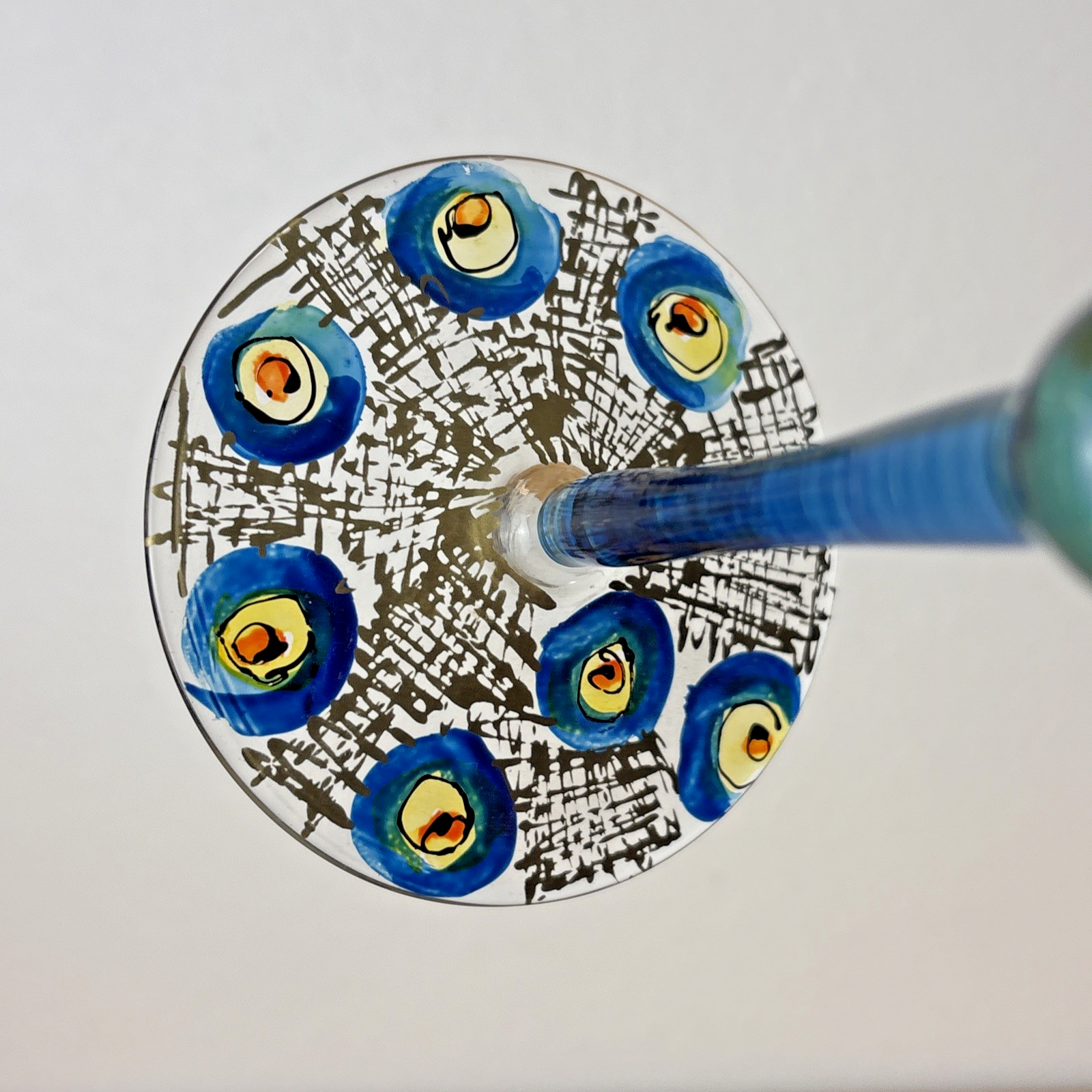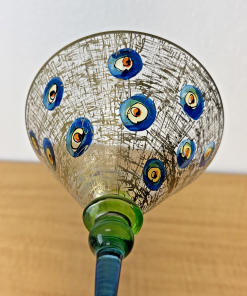 Hand Painted Peacock Martini Cocktail Glass Gold Lattic Olive Design