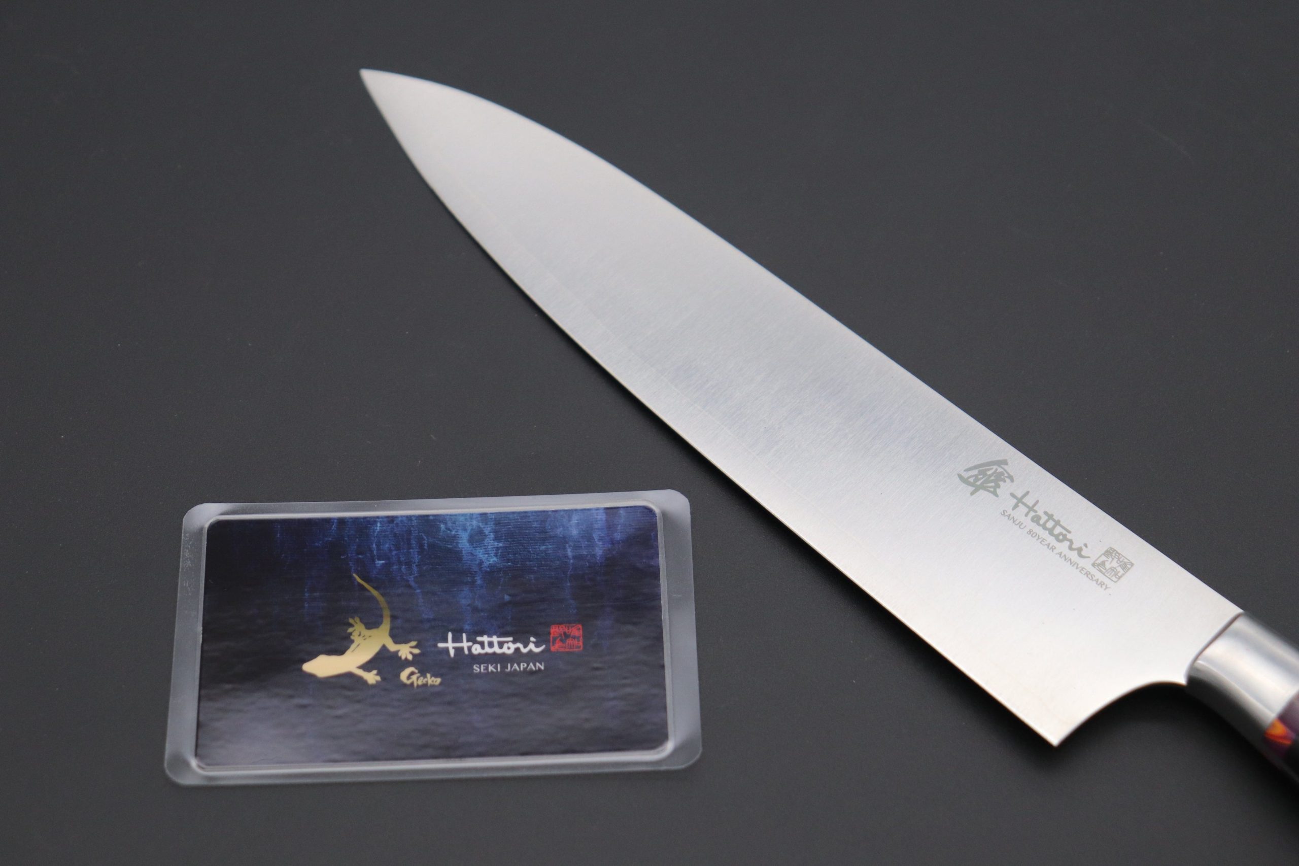 Hattori 傘 SAN-GECKO Limited Edition GECKO-18E Gyuto 210mm (8.2 Inch, Linen Micarta / Royal Purple Hybrid-Resin Handle)