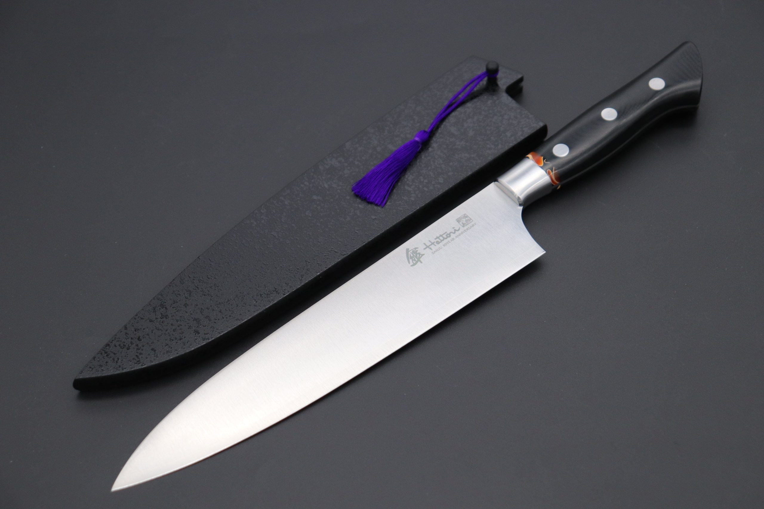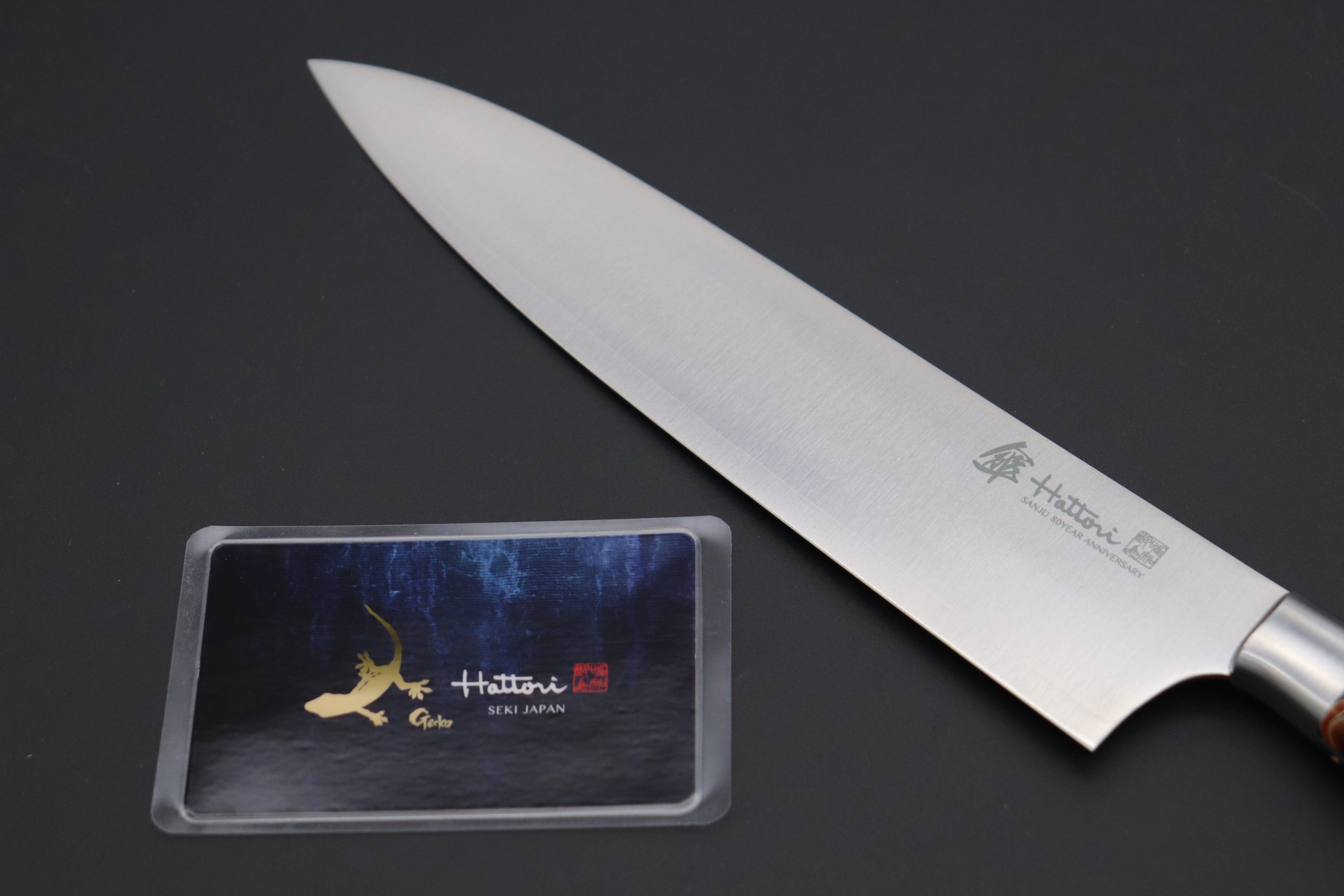 Hattori 傘 SAN-GECKO Limited Edition GECKO-21D Gyuto 210mm (8.2 Inch, Linen Micarta / Orange Hybrid-Resin Handle)