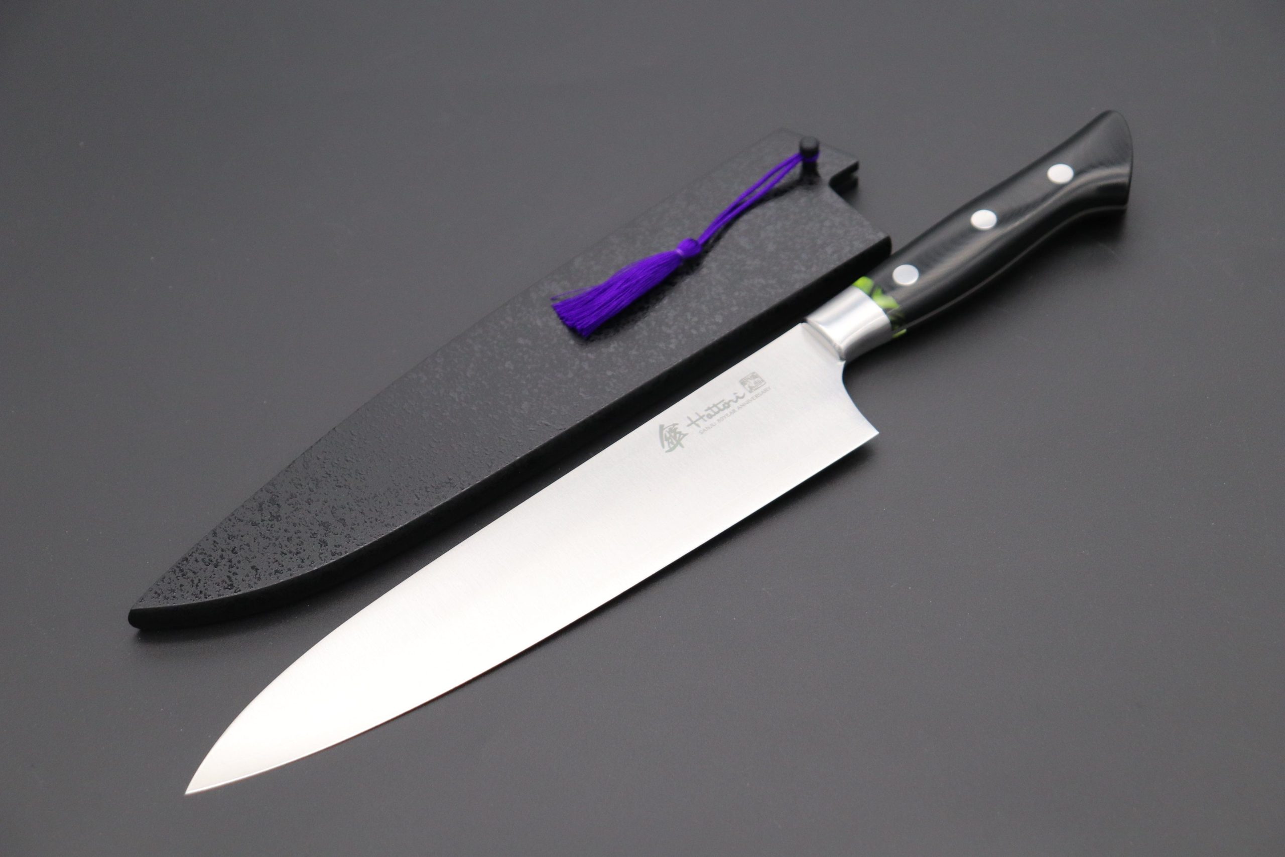 Hattori 傘 SAN-GECKO Limited Edition GECKO-22D Gyuto 210mm (8.2 Inch, Linen Micarta / Lime Green Hybrid-Resin Handle)