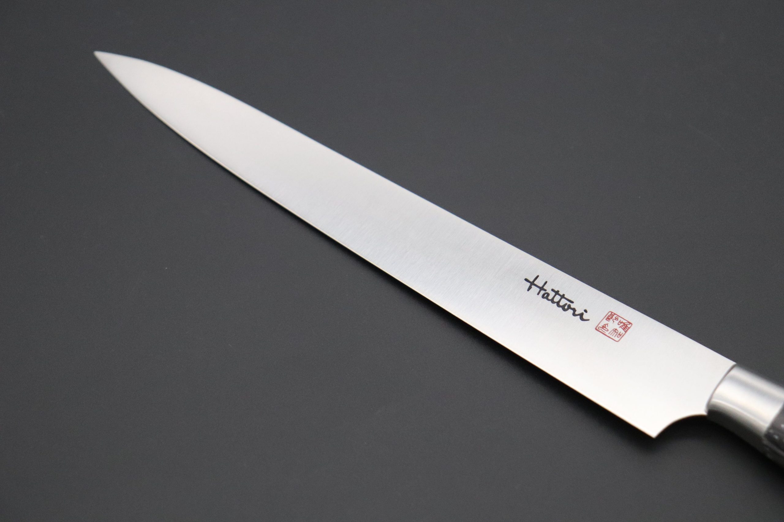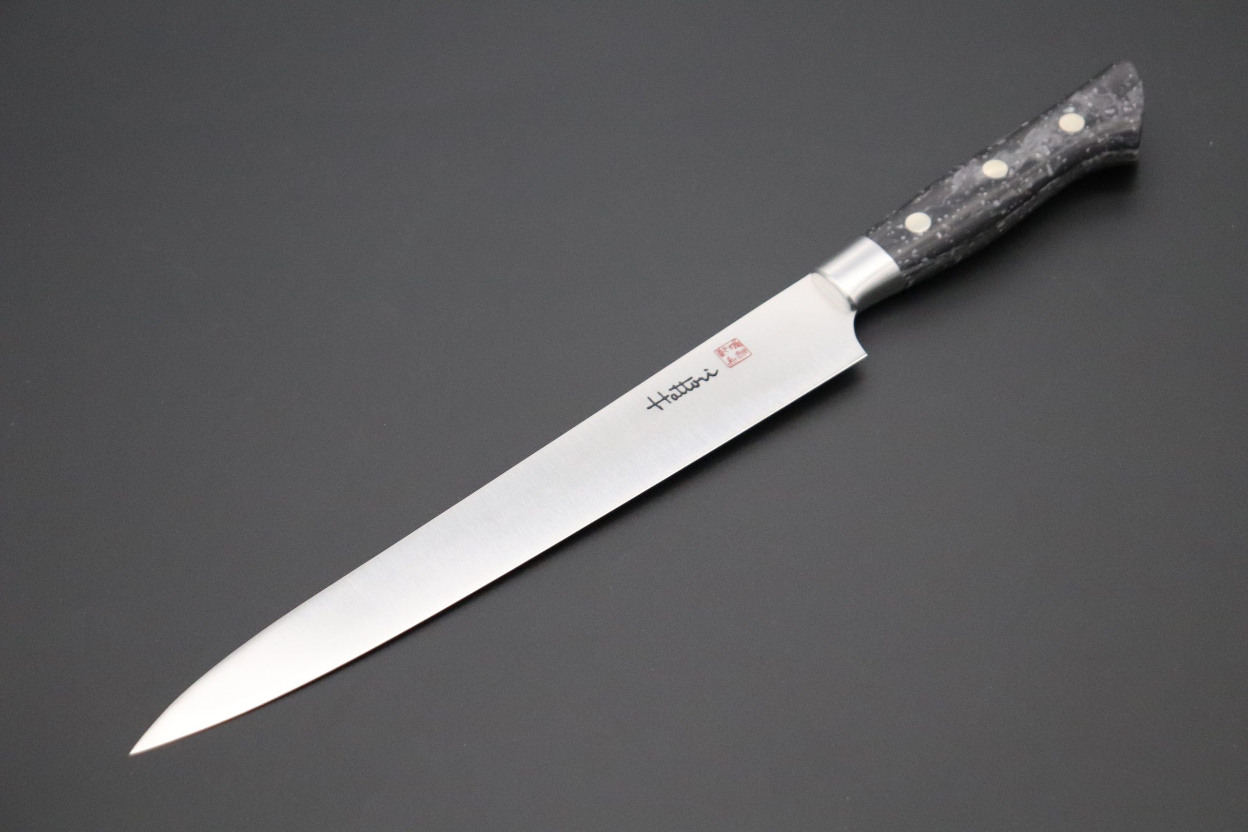 DuPont™ Corian® is a practical handle material that is very durable and water resistant. Master Hattori has carefully hand-contoured the handle and Stainless Steel bolster to provide a perfect, comfortable grip and superb blade balance.