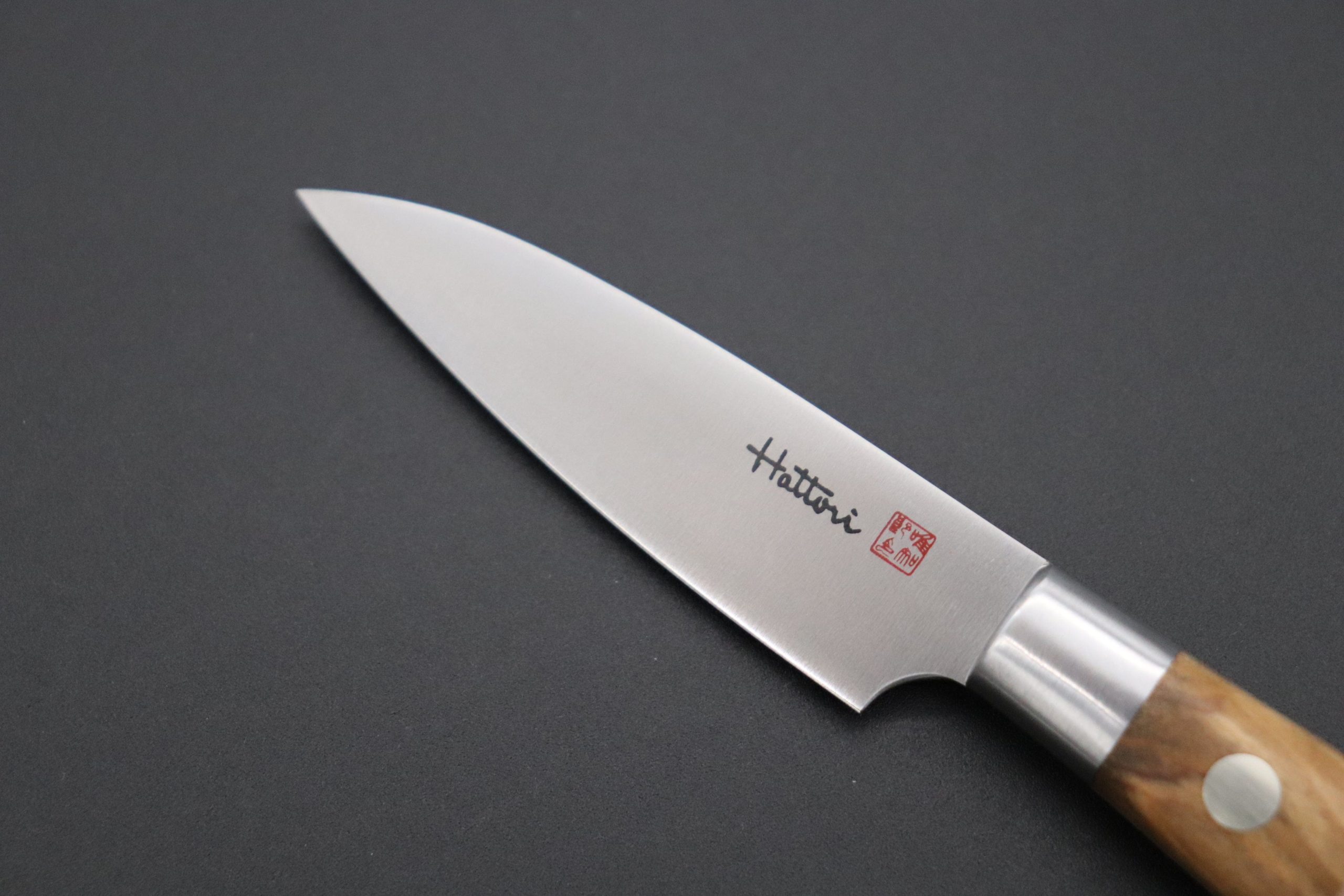 The blade is made of VG-10 Cobalt Steel (HRC60 to 61). Even though it is simple appearance, we can feel the Hattori’s detailed works high level of craftsmanship from finely hand sharpened and polished blade.