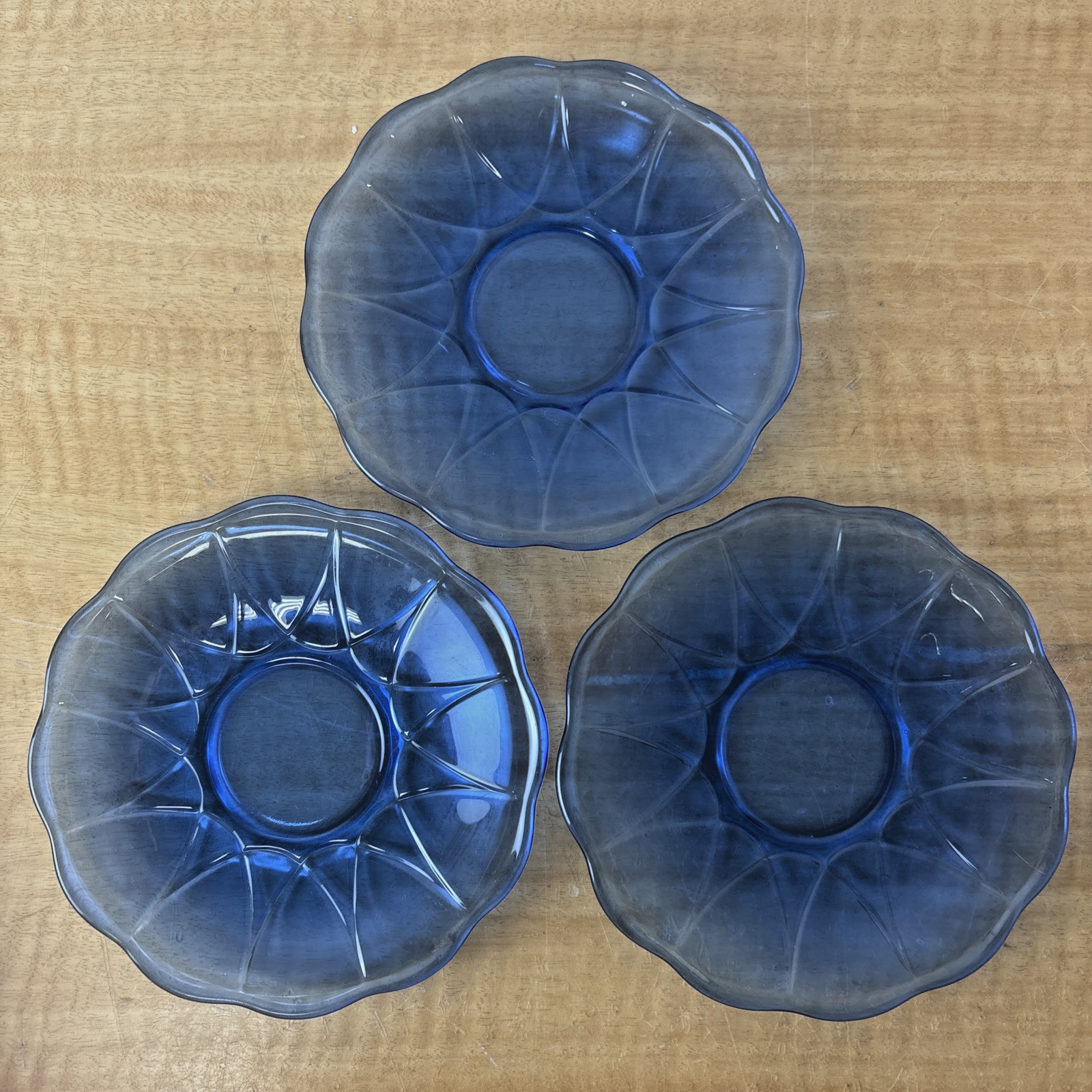 Hazel Atlas Glass NEWPORT “Hairpin” Cobalt Blue Bread and Butter Plate Set of 3
