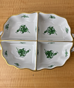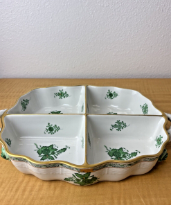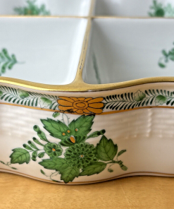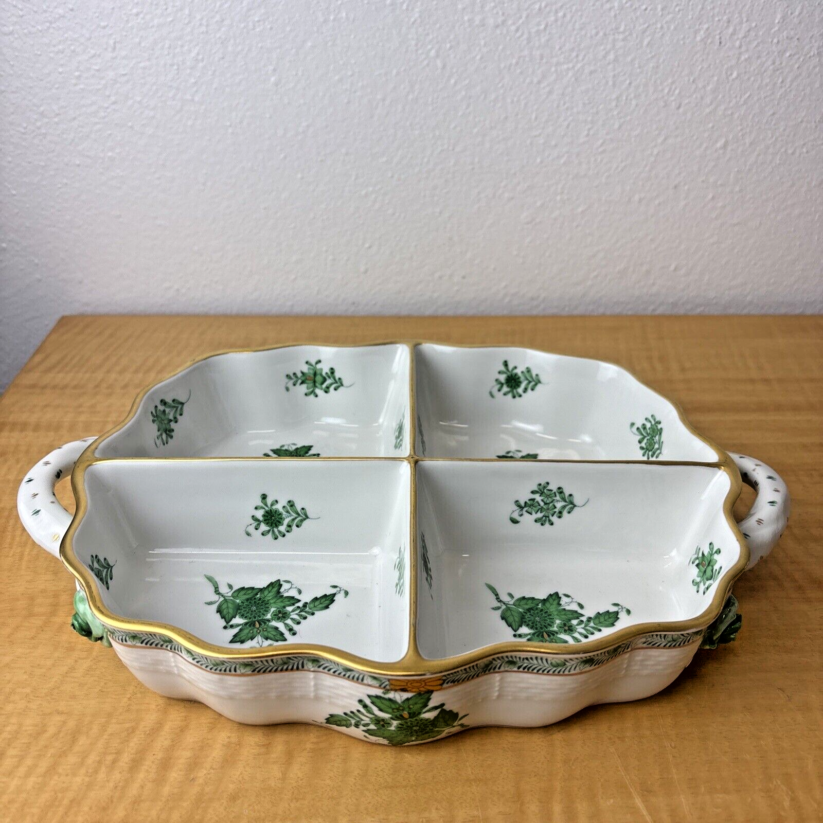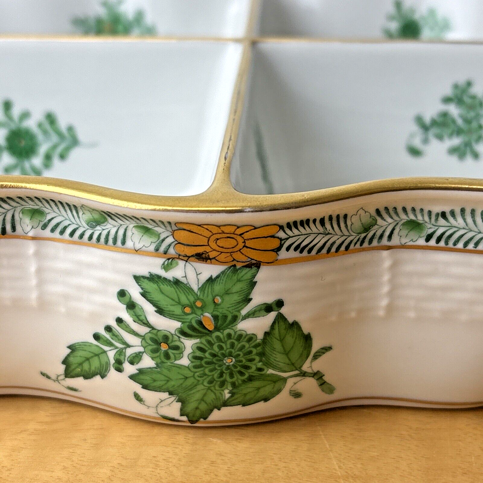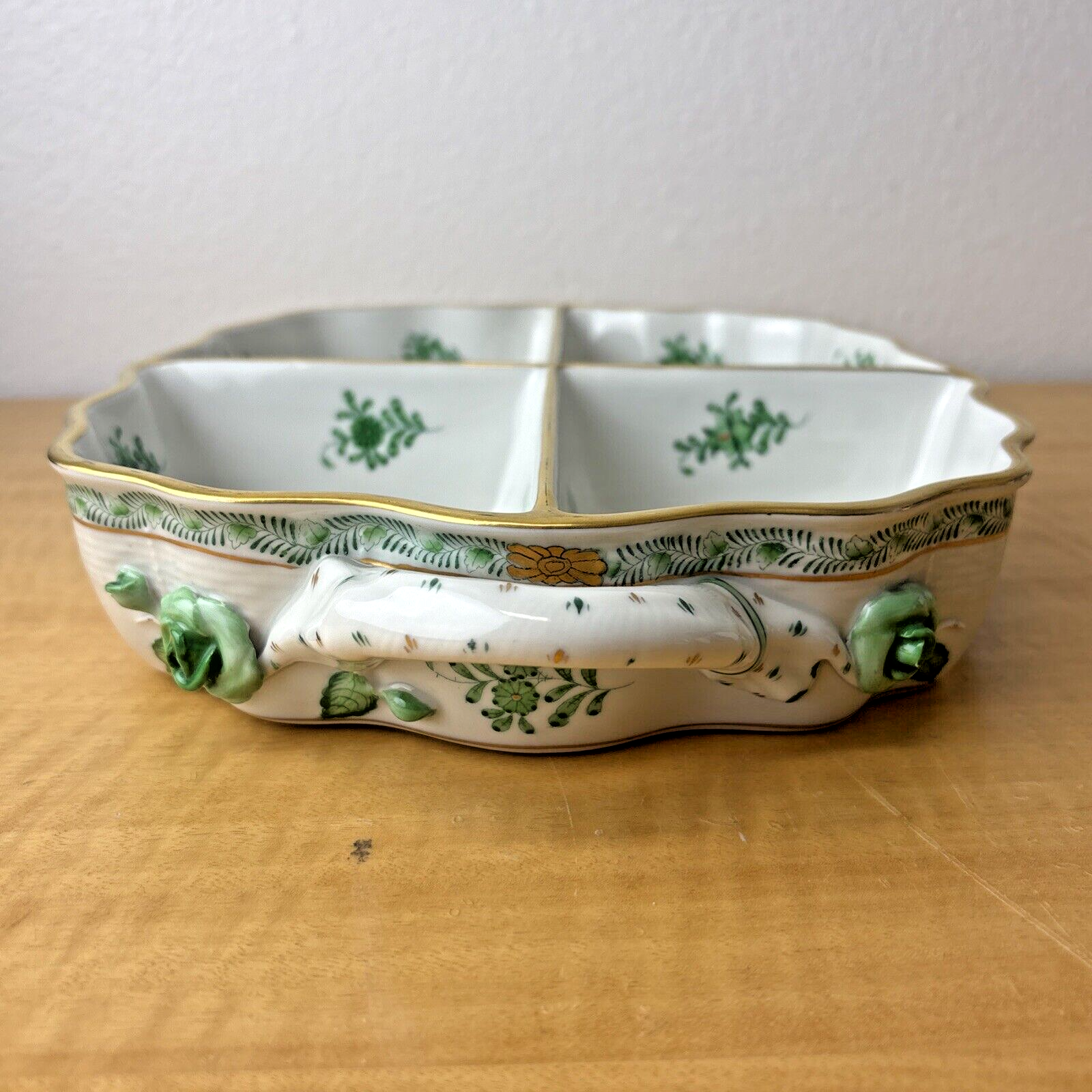 Herend Hungary Chinese Bouquet Green Hand Painted Divided Porcelain Dish