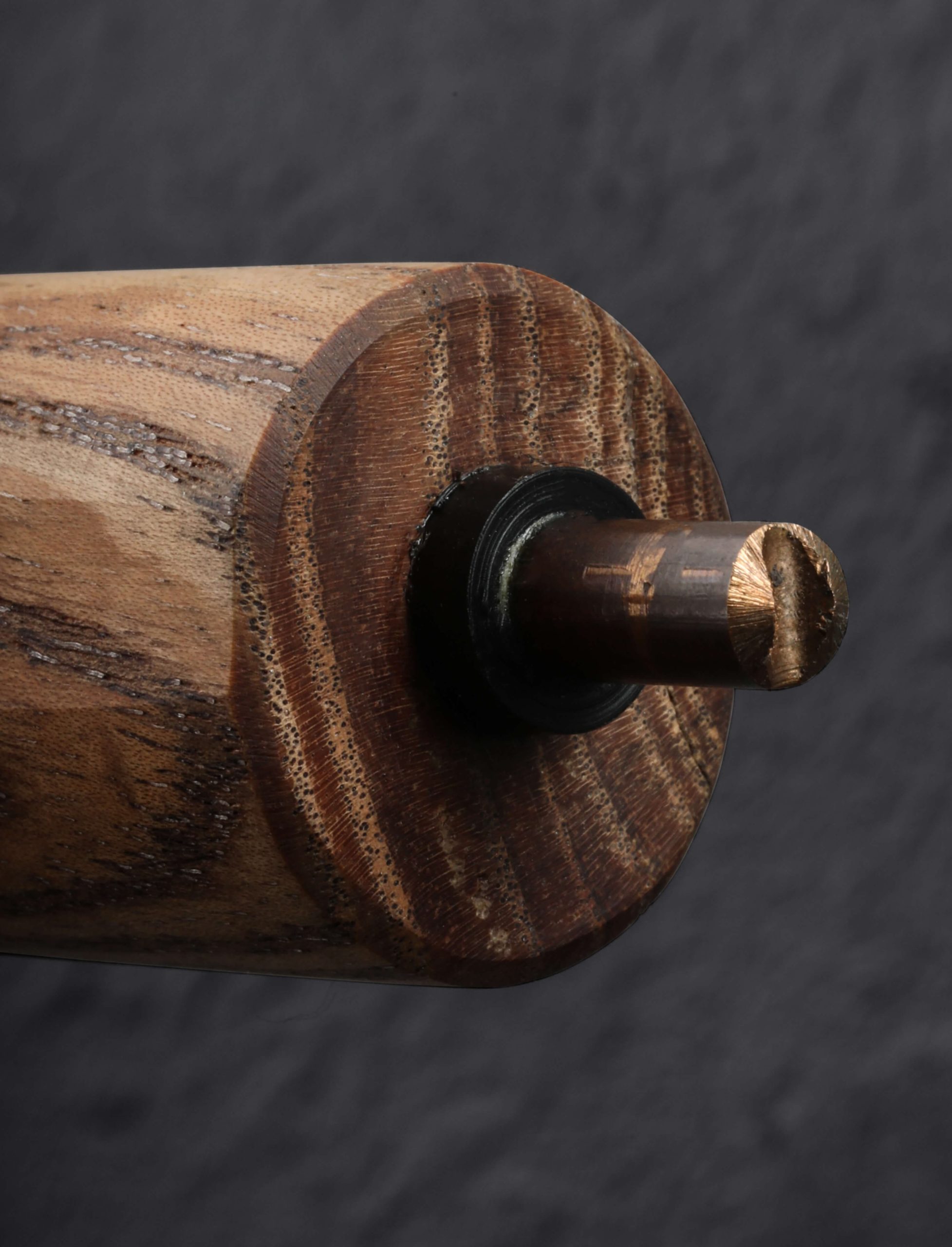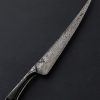 With a touch of waffling along the blade’s flats to accentuate the presence of polished copper in the striking house-made copper damascus steel, this pre-owned, unused, like-new nakiri by Jeramie ‘Jezz’ Heywood is a one-of-a-kind. An Aogami Super carbon edge, sharp and thin, delivers head-turning performance and good looks for the cook’s kitchen. Large, sharp, front heavy, and tough from ‘tip’ to heel, this nakiri plays the role of cleaver in its spare time, its tall, convex bevels and thin edge perfect for moving effortlessly through even the densest of ingredients. Jezz, a long-time steel formula developer serving the global craft culinary maker’s market, creates sole-authorship chef’s knives like this one from his own materials, and the results, as you can see, are extraordinary. For comfort and control over this weighted, 11.9oz / 339g piece is a long, tapering, round handle in Jezz’s usual all-utility style sculpted from white cedar with a pine dowel to secure the blade tang at one end, and a copper finial at the other.