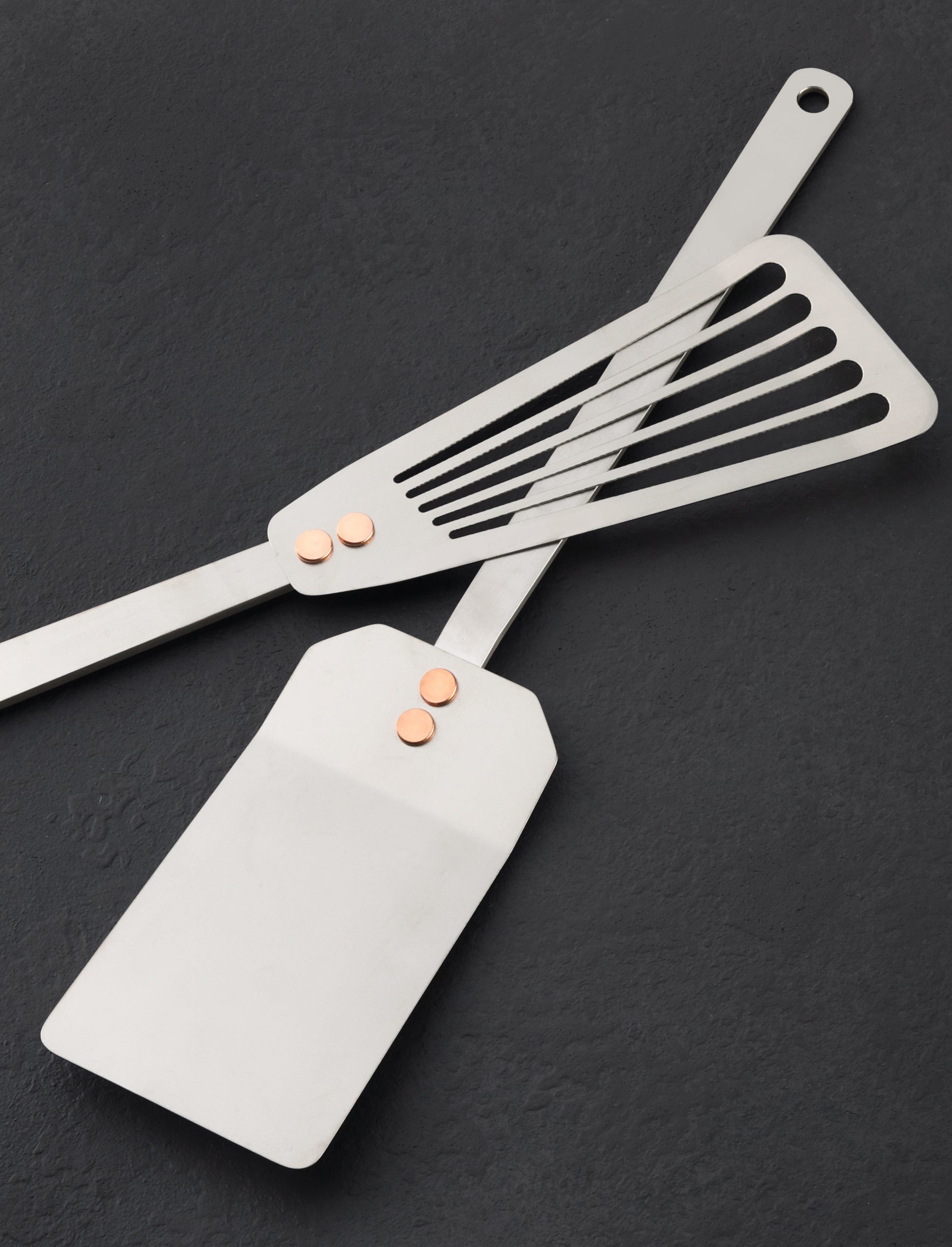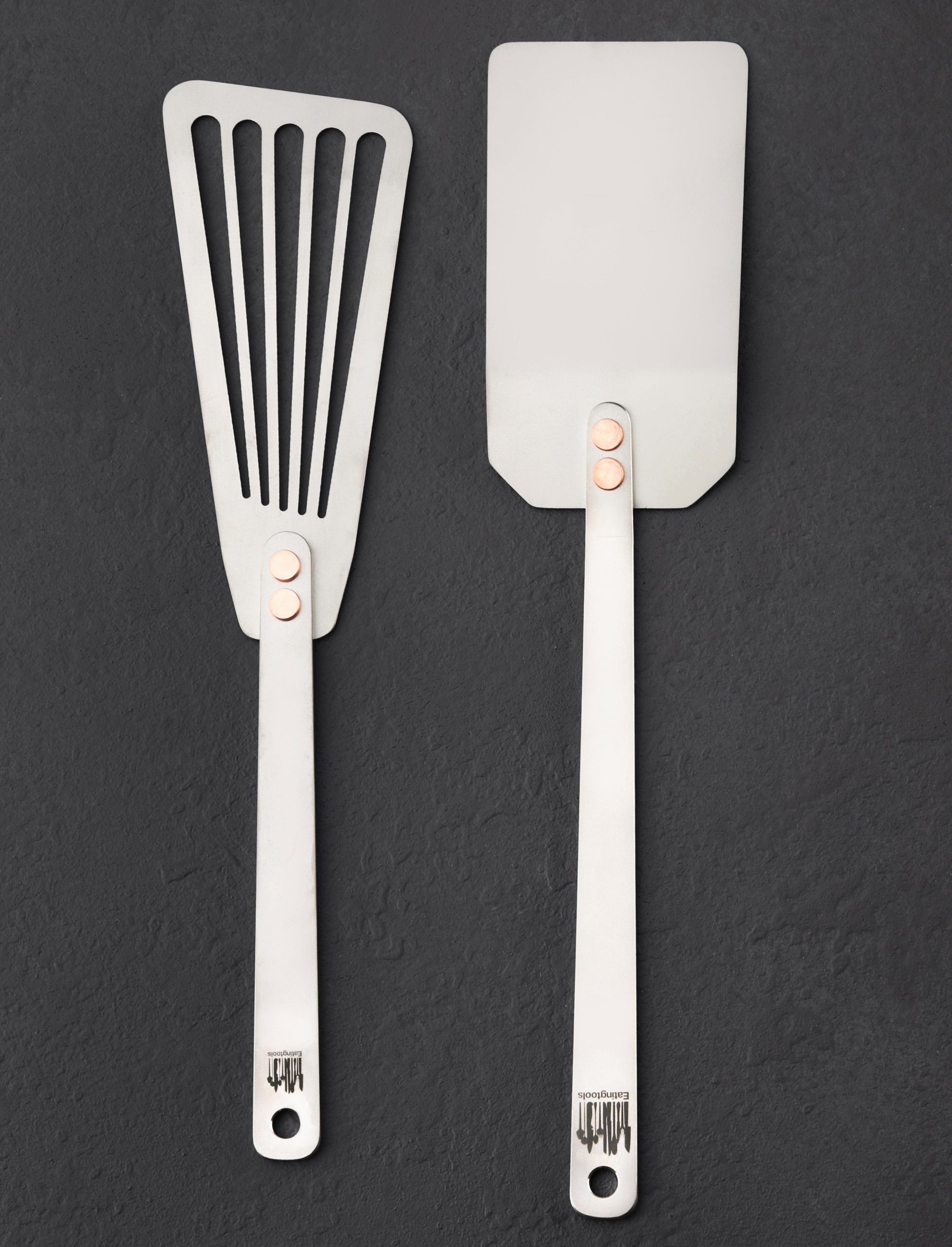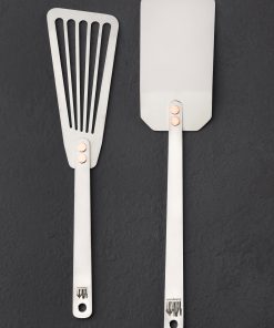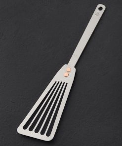 For the home cook, this titanium spatula gift set includes two of the most popular and widely used cooking tools from Ben Tendick’s collection. The TiSpats Titanium Kitchen Spatula: Flat-Head for heavy lifting in all corners of the kitchen, and a thin, flexible, slotted TiSpats Titanium Fish Spatula. Two best sellers packaged together for home cooks and working chefs alike.