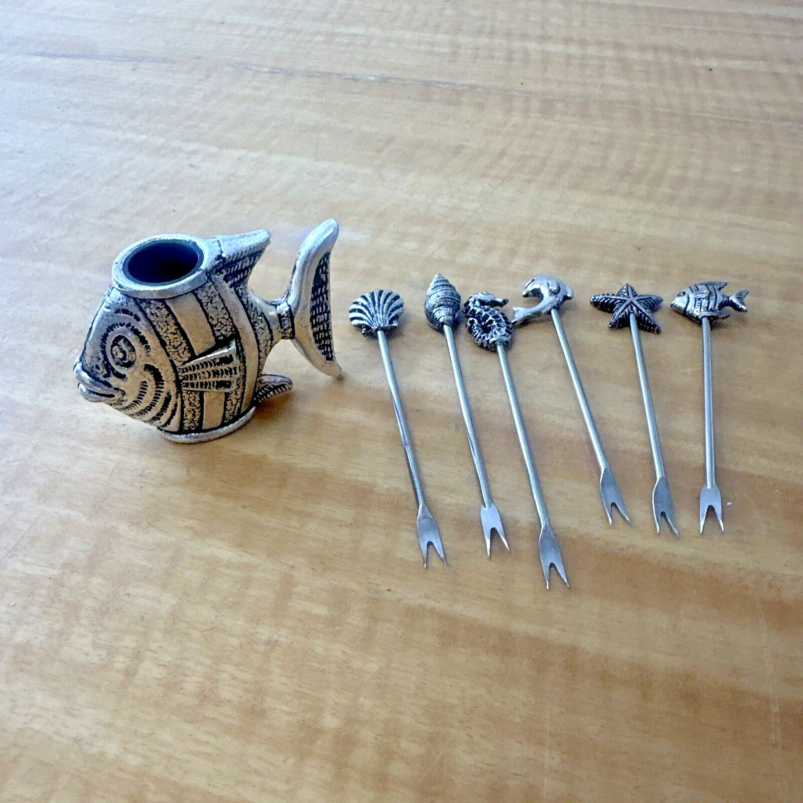 Hors D’oeuvres 6 Mini Forks, Fish Holder from Spain – Sea Life, Beach, Ocean