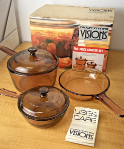 IN BOX – CROWN CORNING PYREX VISIONS 5-PIECE Amber COOKWARE STARTER SET 3219P