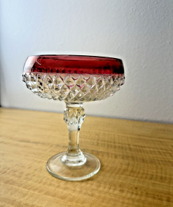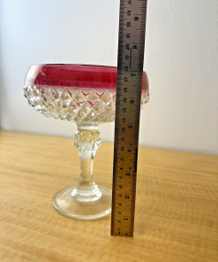 INDIANA GLASS DIAMOND POINT RUBY BAND CANDY JAR/COMPOTE