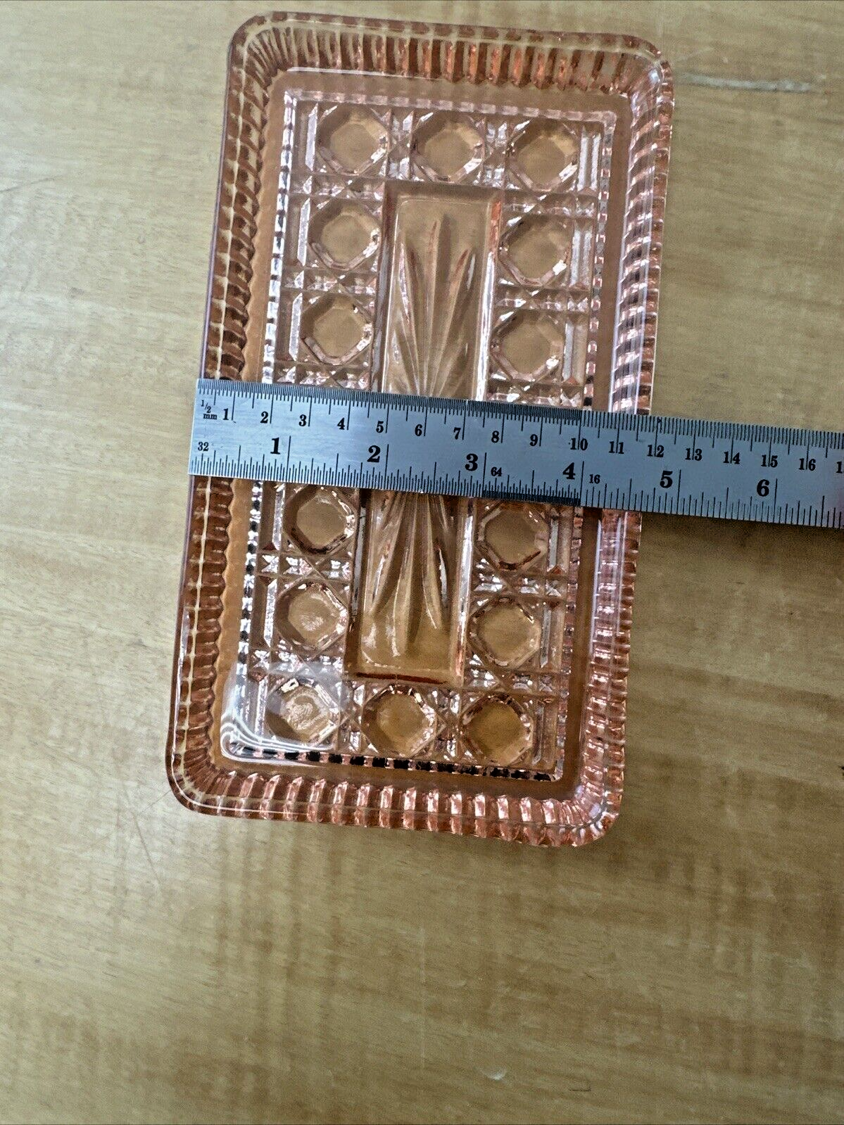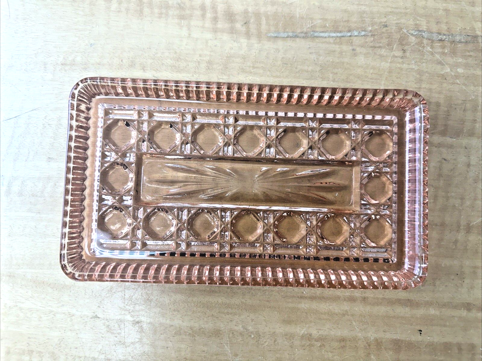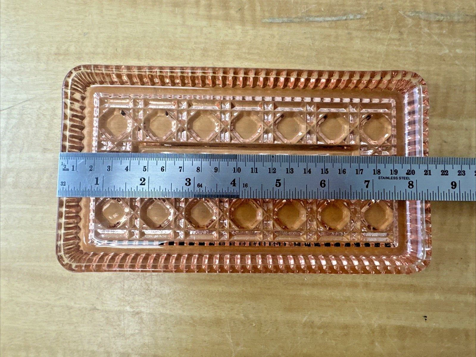 Indiana Glass Peach Ballard Cranberry Tray 4061 8.5×5″ Oneida