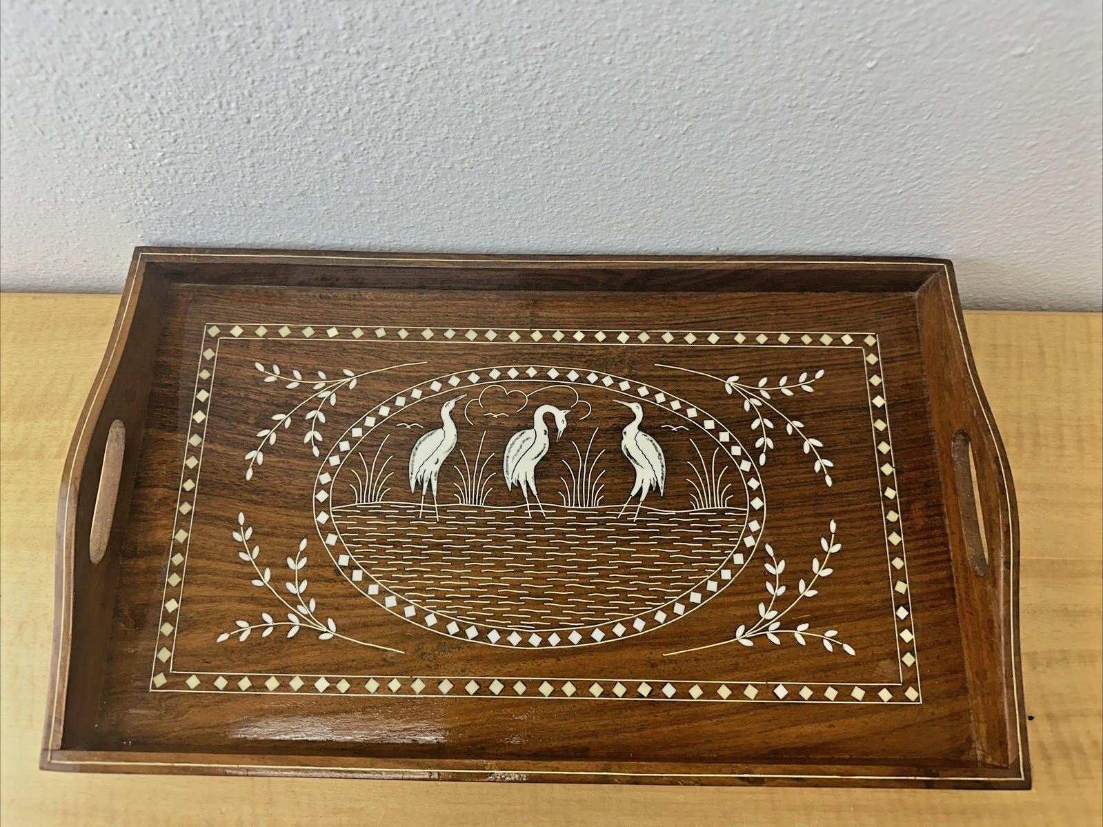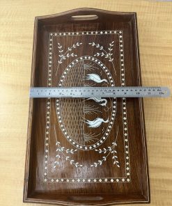 Inlaid Handmade Wooden Service Tray With Handles – Indian