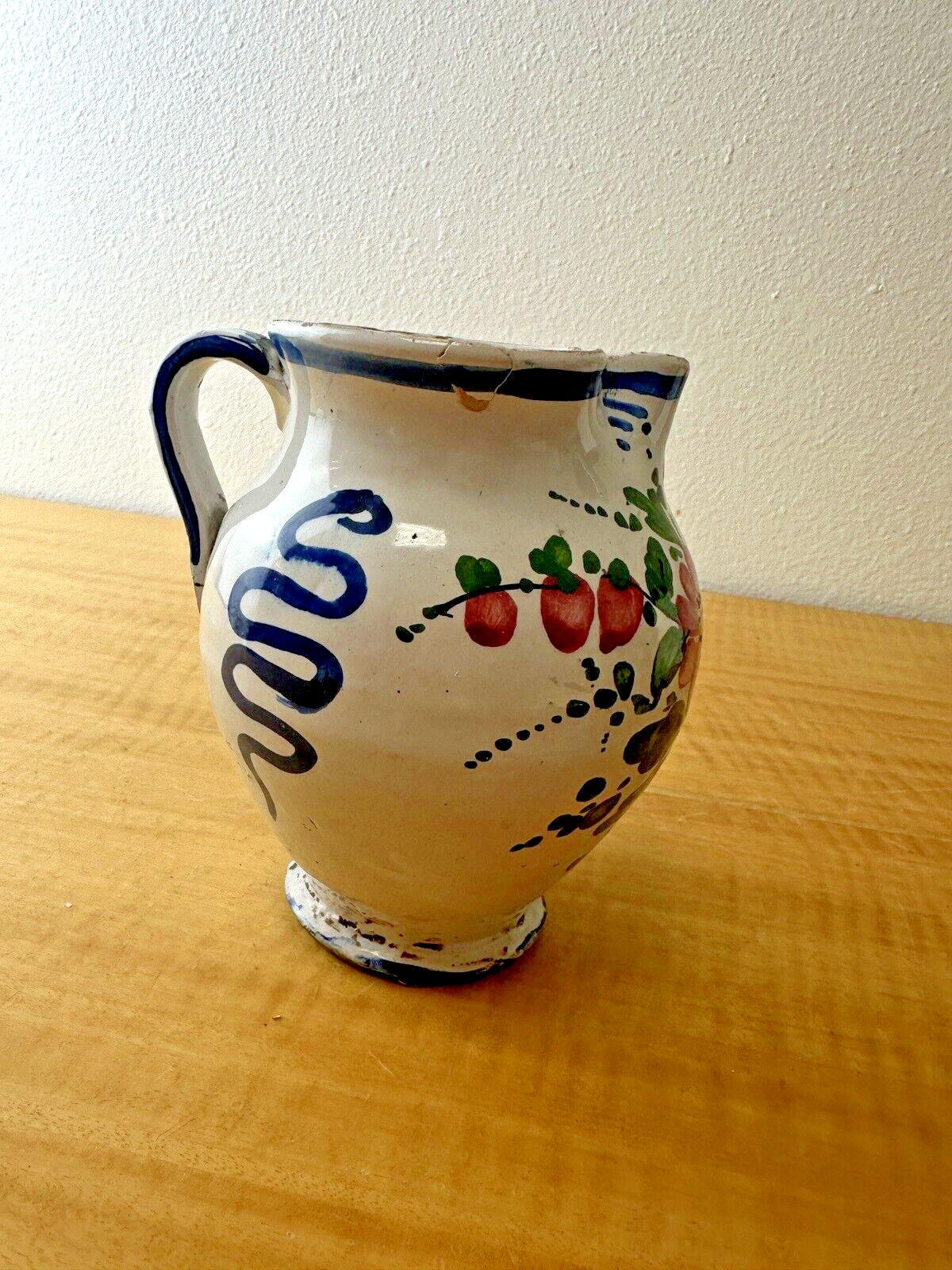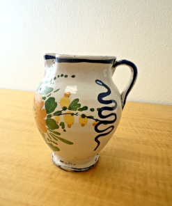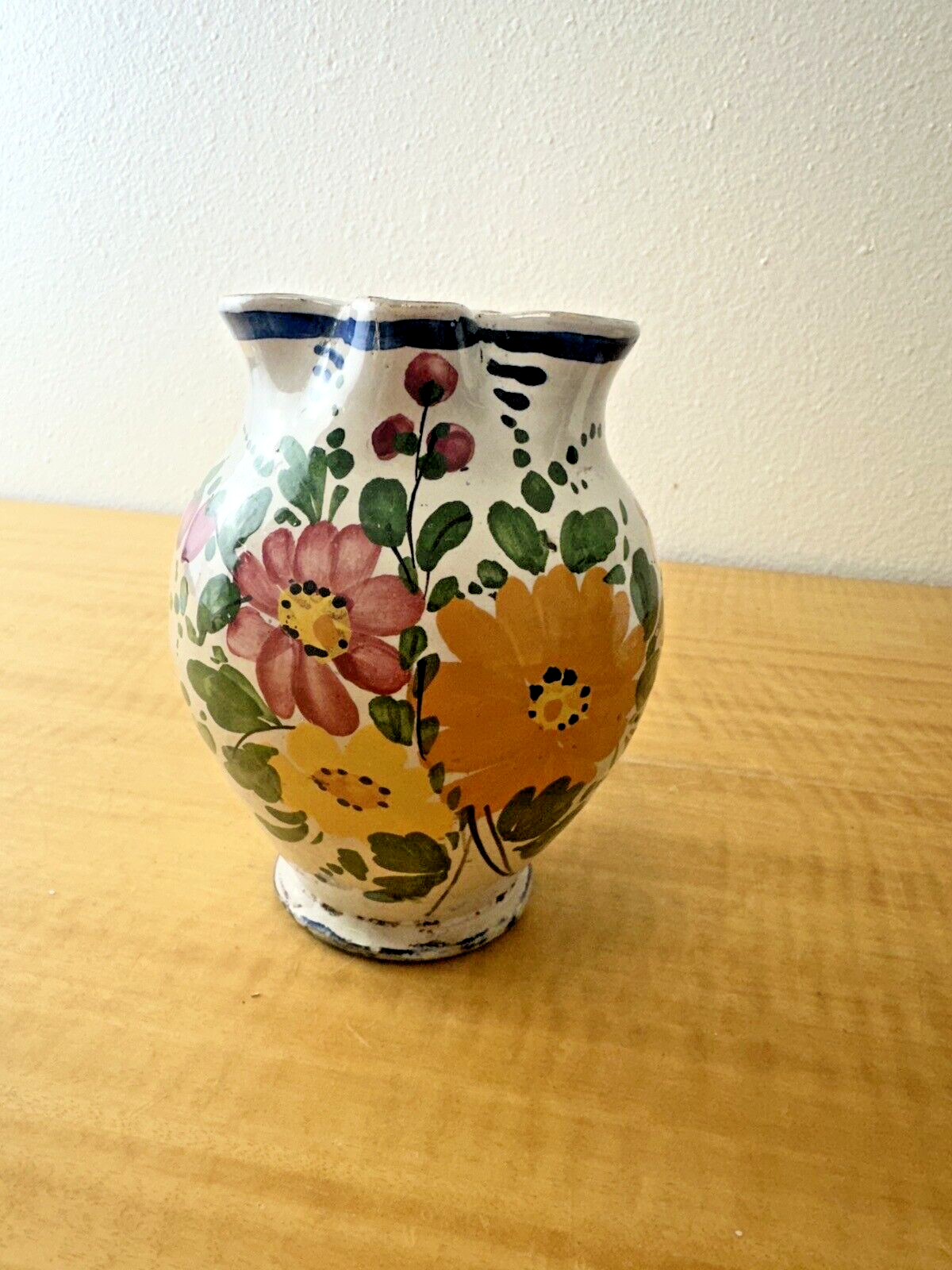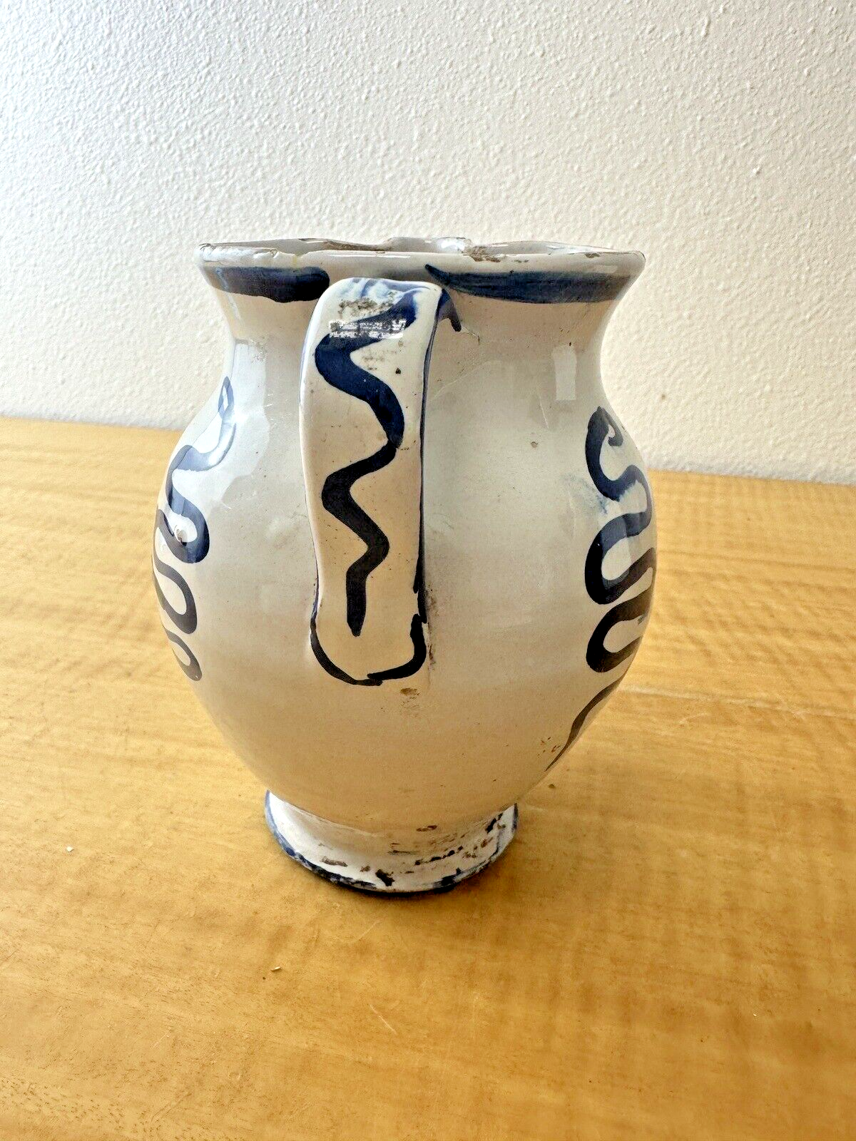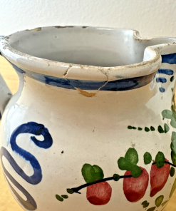 Condition Description: This is a vintage item in very good condition that may show signs of age, use &/or storage- some glaze flaking and wear, along with a few nicks throughout- smudges of paint throughout that include smudges of what looks like the artist’s fingerprints along the inside edge- a small chip at the bottom rim of the vase- Approx age: 1940s-1950s- Exciting, beautiful artisan handmade pottery with major appeal & charm- Please see photos for details
