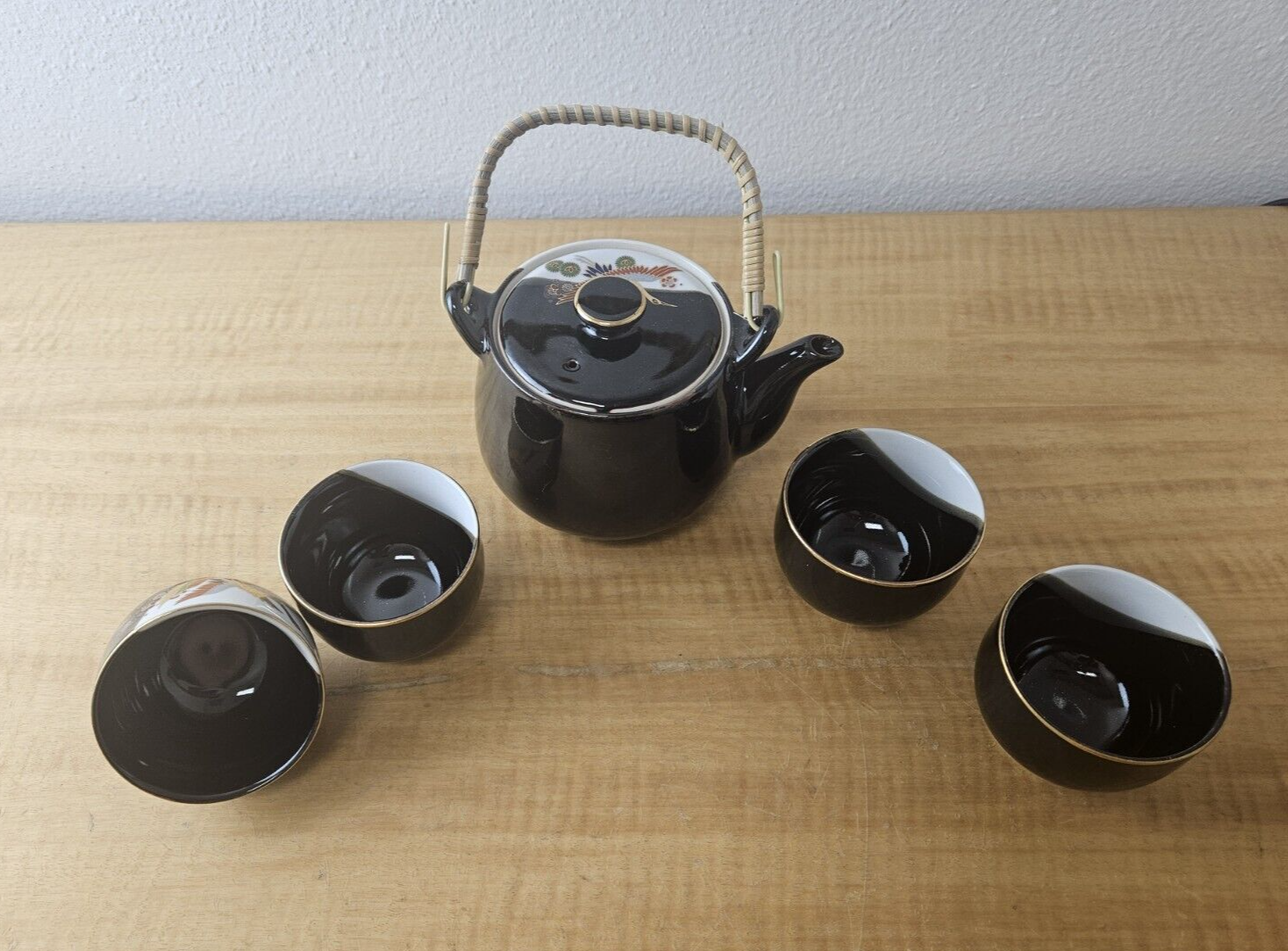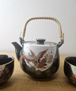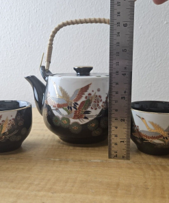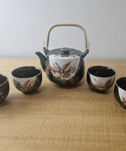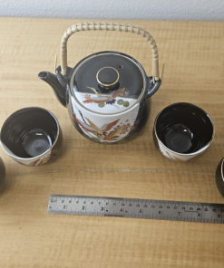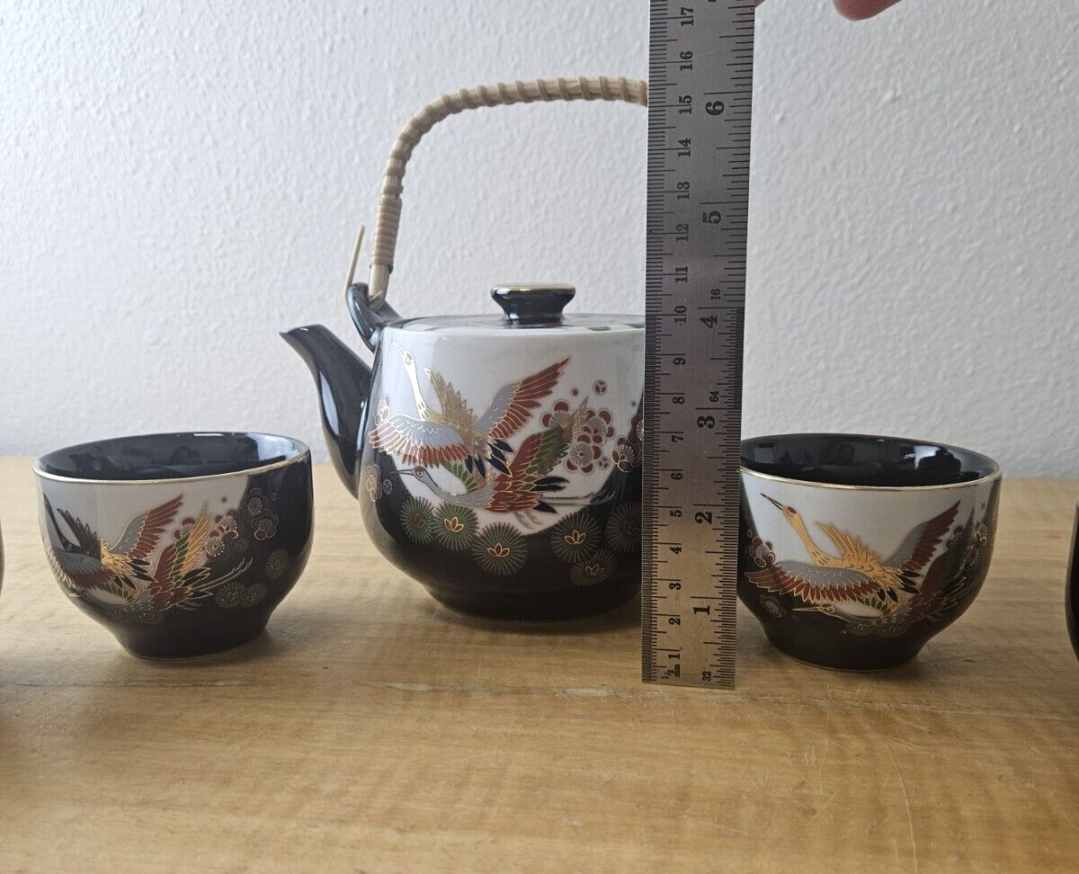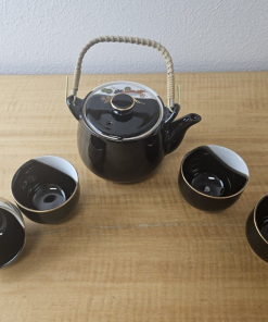 JAPAN PORCELIAN TEA POT CUP SET BLACK with Gold trim and accents