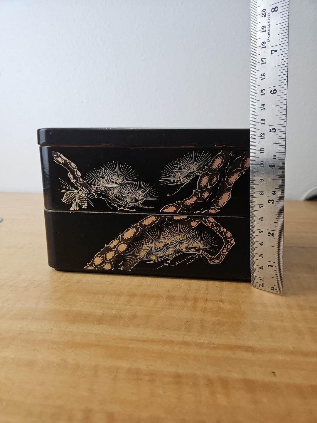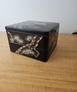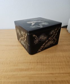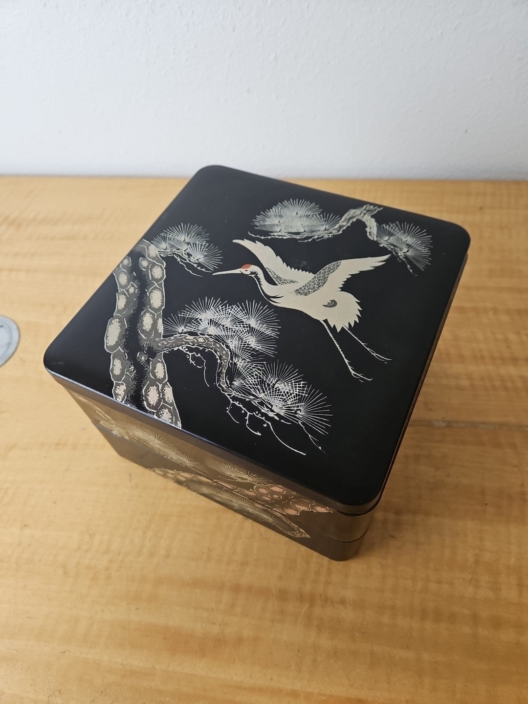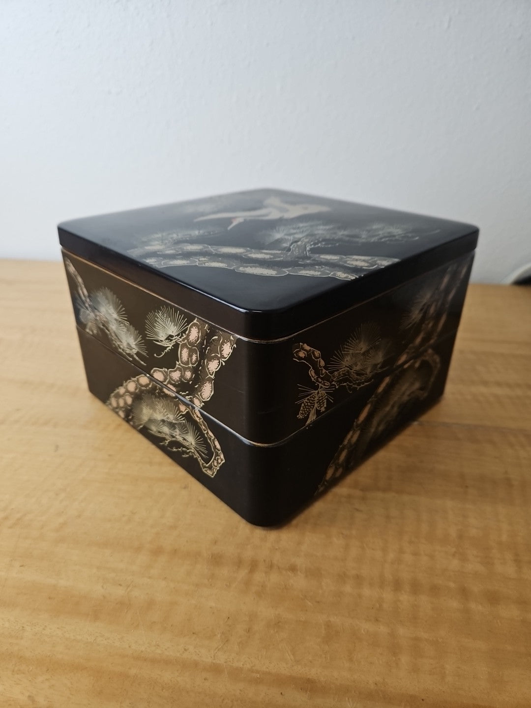 Japanese Retro Lacquerware Two-Tiered Jubako Box Pine Crane Design Vintage