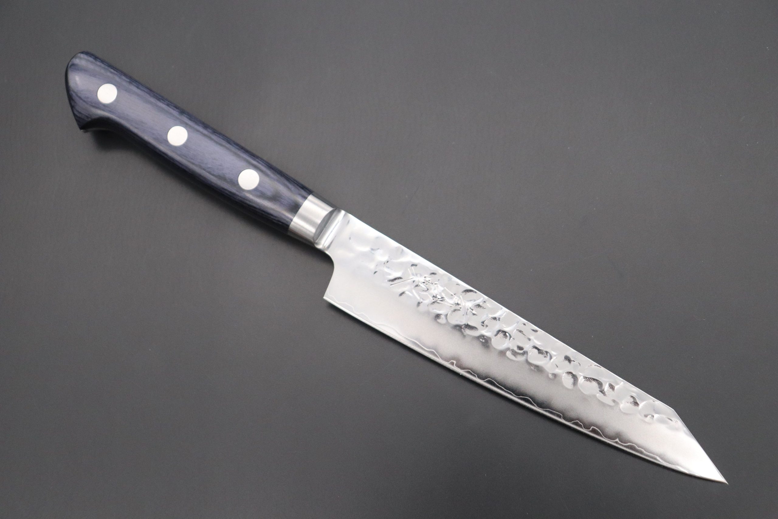 JCK Natures 青雲 Blue Clouds Series BCP-1 AUS-10 Tsuchime Hammered Kiritsuke (Bunka) Petty 140mm (5.5 inch, Royal Blue-Purple Pakka Wood Handle)