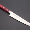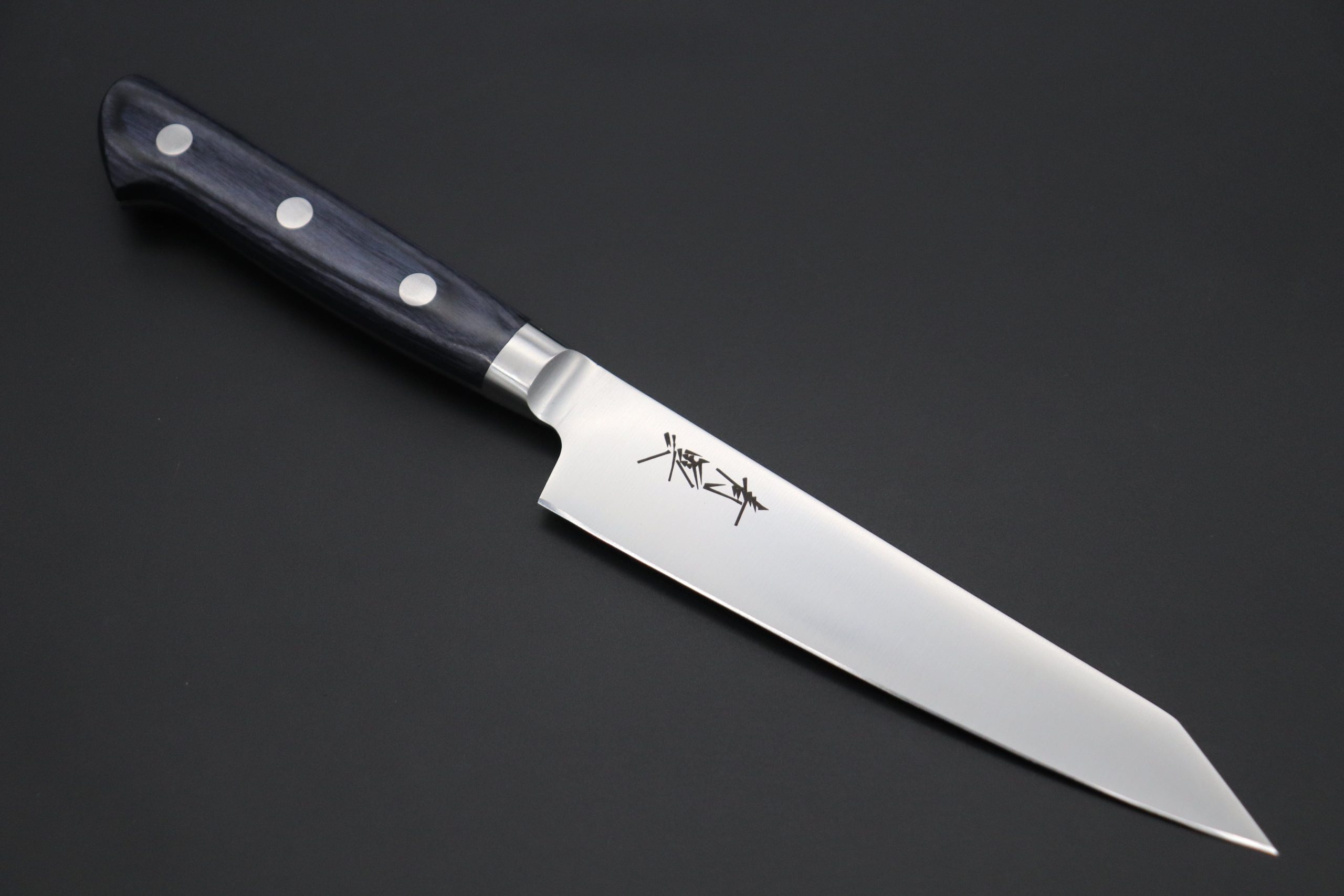 A mainstay of professional Western kitchens, the Kiritsuke Petty knife is a small general-purpose knife used for peeling, shaping, and slicing fruits and vegetables, chopping herbs, and making garnishes. The compact size and relatively narrow blade of the Petty knife mean that it is very nimble and controllable, thus it is ideal for making precise cuts.