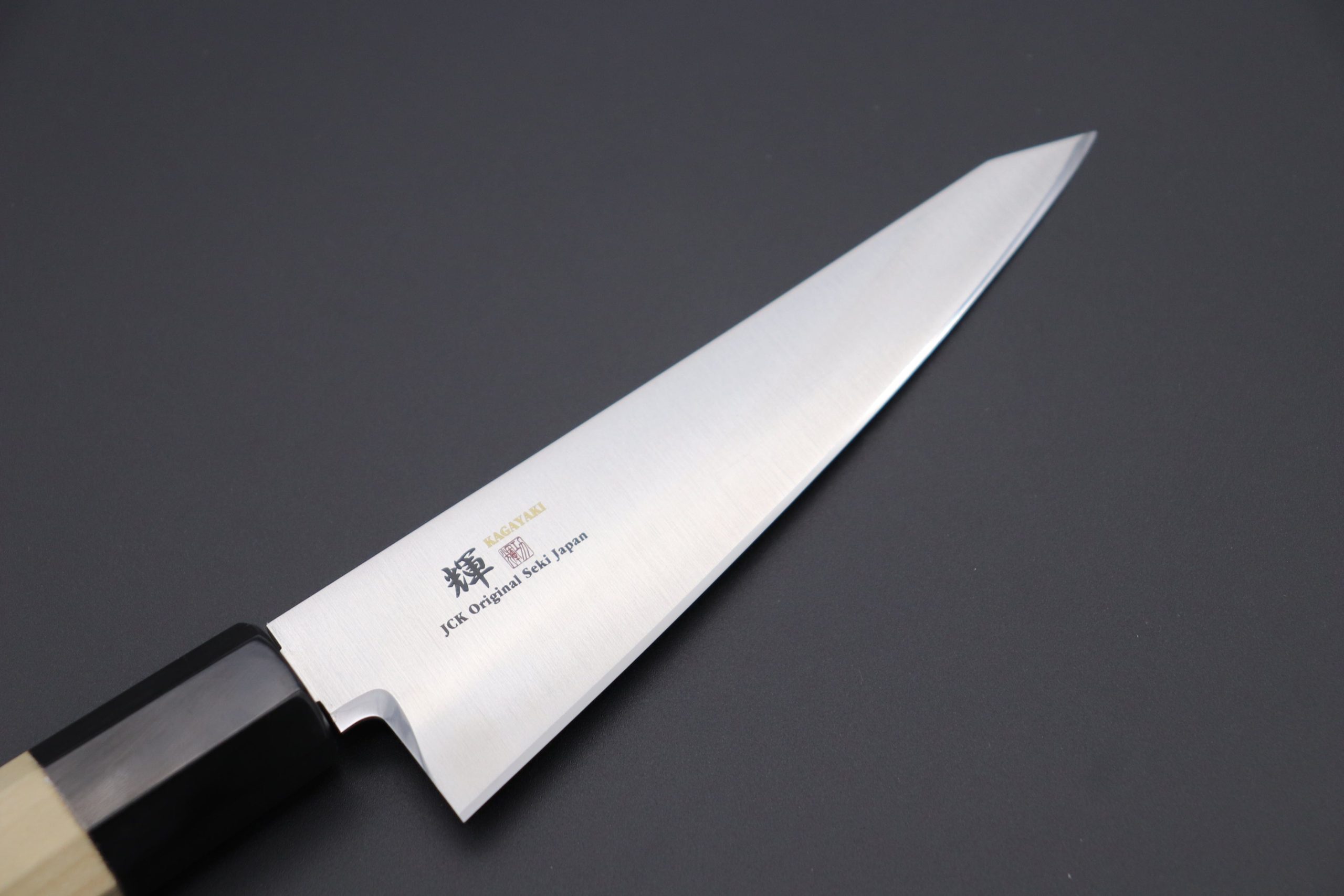 We often have received the inquiry and request for Wa Handle Version of Honesuki/Boning Knife. The light weight balance and high cutting performance and practical and high quality Wa Honesuki. We wanted to make the simple, but functional Wa Honesuki for our customers with Kagayaki Craftsman team.
