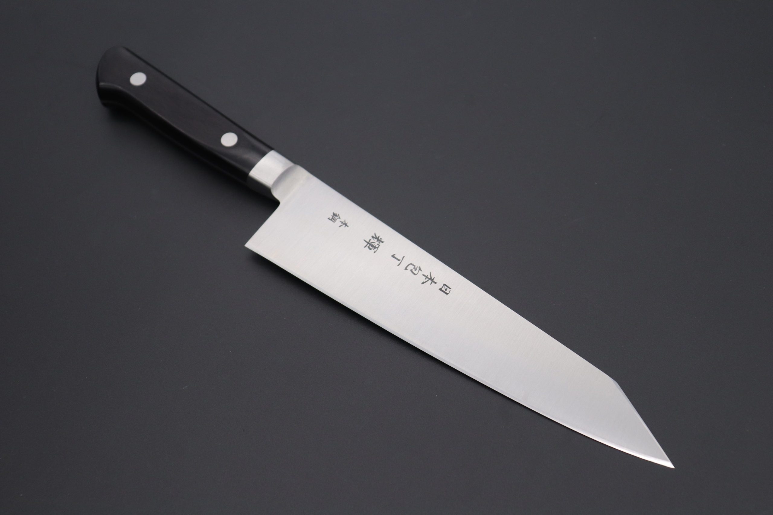 The stylish and versatile Kiritsuke-Gyuto is becoming more common and popular in recent years. The triangular tip area is particularly useful for detailed work and cutting fish or meat. It is a very versatile knife that can be used to perform many of the tasks normally done with a Gyuto.