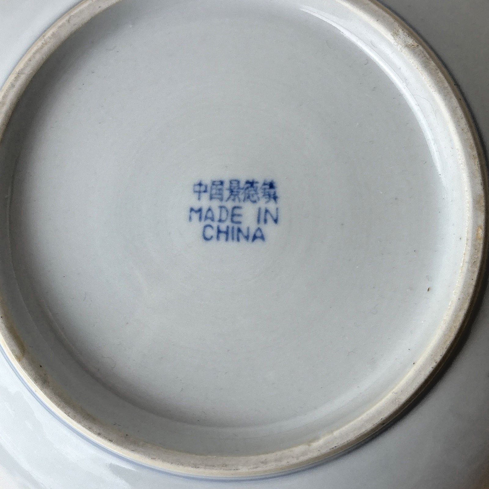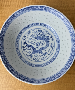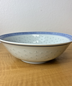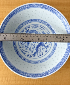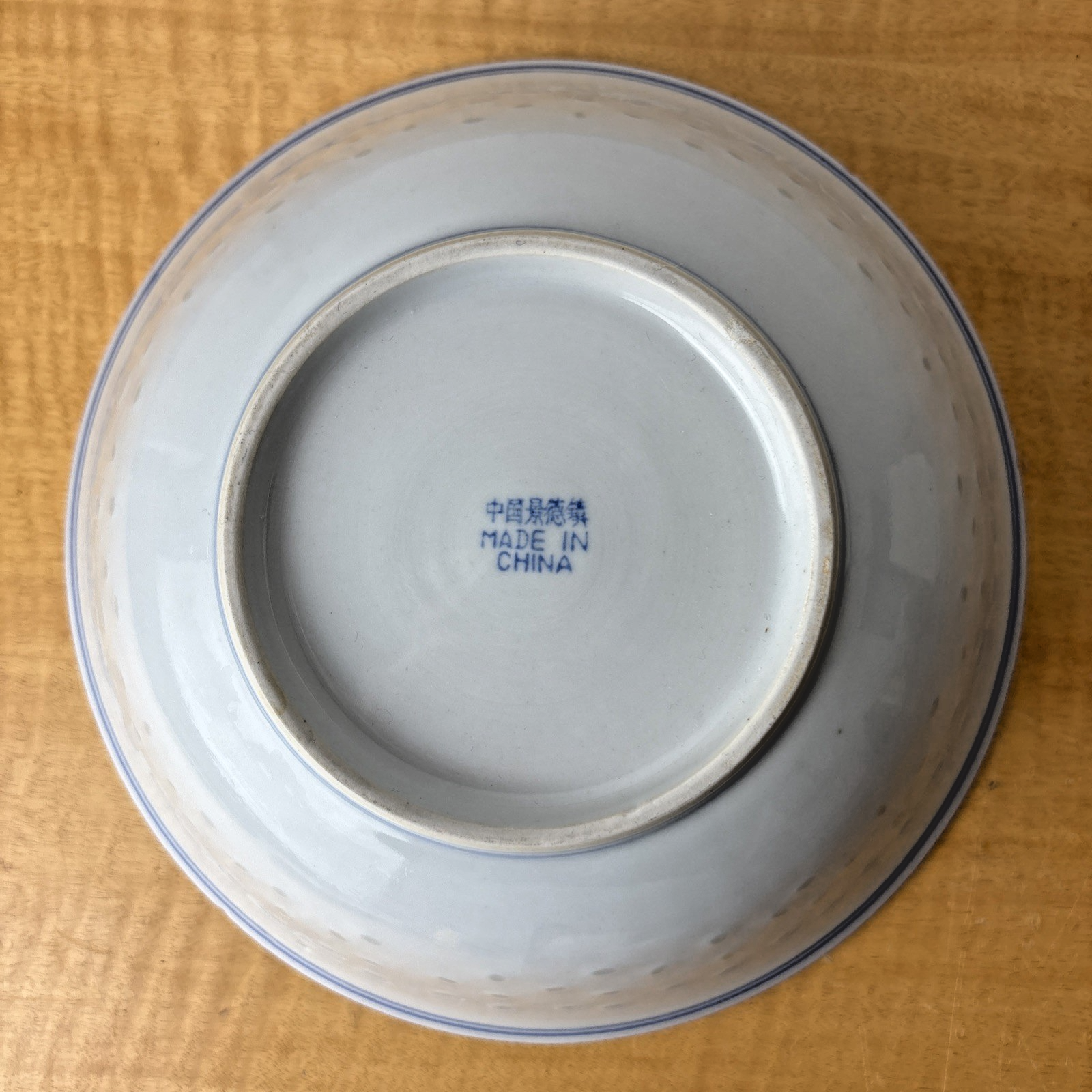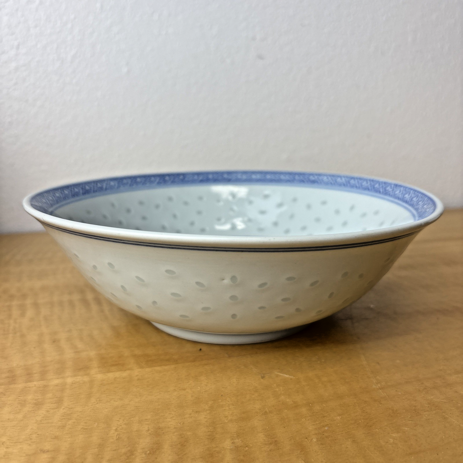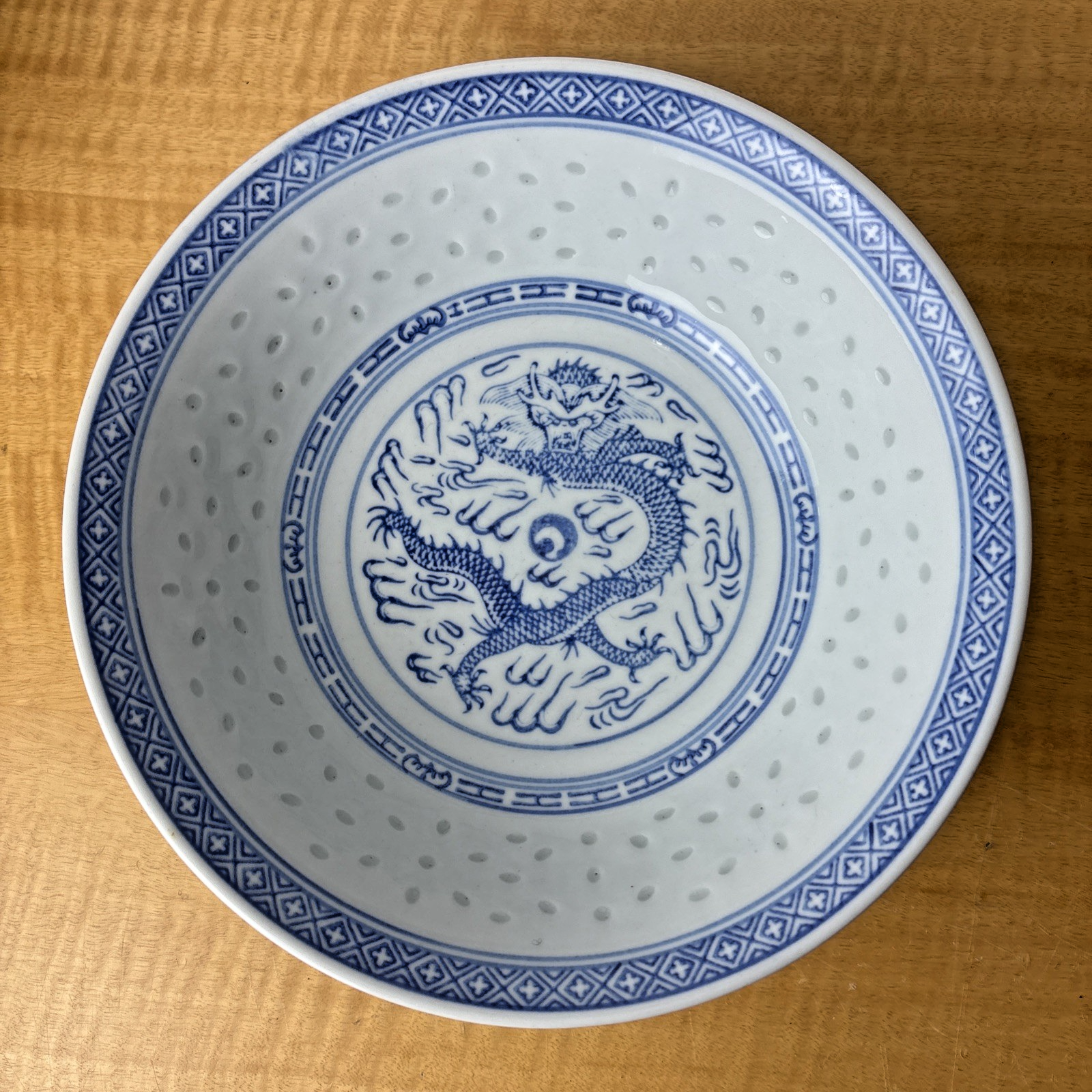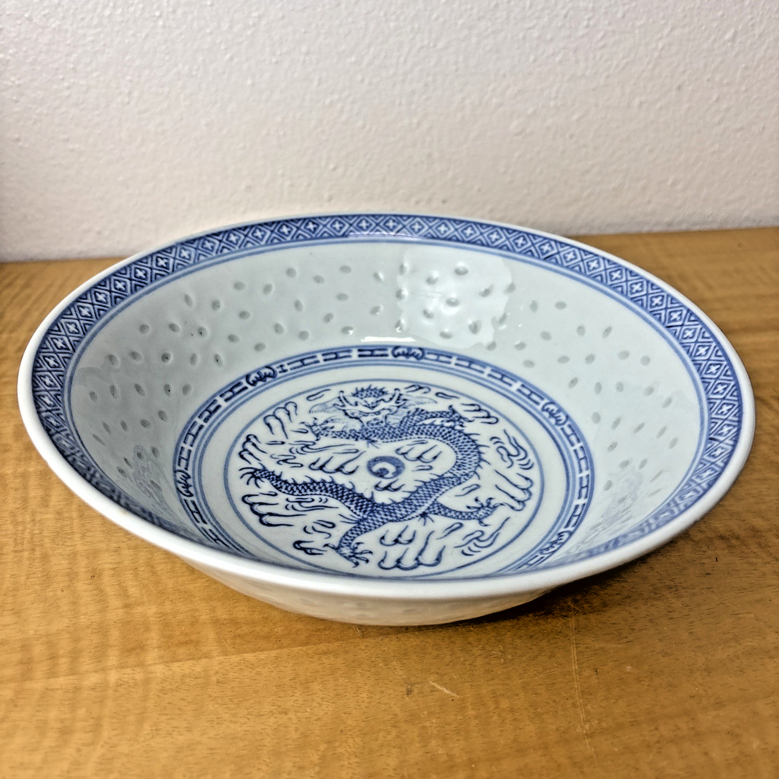 JingDeZhen ~ Chinese Rice Eye Dragon Pattern Blue & White Serving Bowl 9″ inch