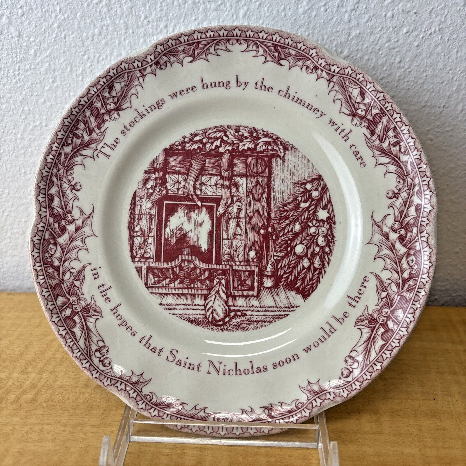 Johnson Brothers England Twas the Night Red Transfer Christmas Salad Plate