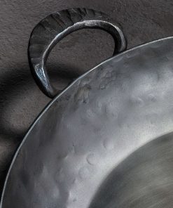 For a grand feast, a celebration, or simply a Thursday night, artisan-blacksmith Dennis Kehoe’s 14″ Paella Pan is the heirloom tool for the job. Forged by hand from thick, 10-gauge carbon steel with two loop handles and a pre-seasoning of coconut oil, this versatile carbon pan is designed to perform on any cooking surface including all indoor stove-top heat sources, in the oven, and outside over the open flame. Sloping, mid-height sidewalls made for cooking the storied Spanish dish provide the versatility needed for recipes of any size. A stunning addition to any cookware collection that guarantees generations of cooking pleasure.