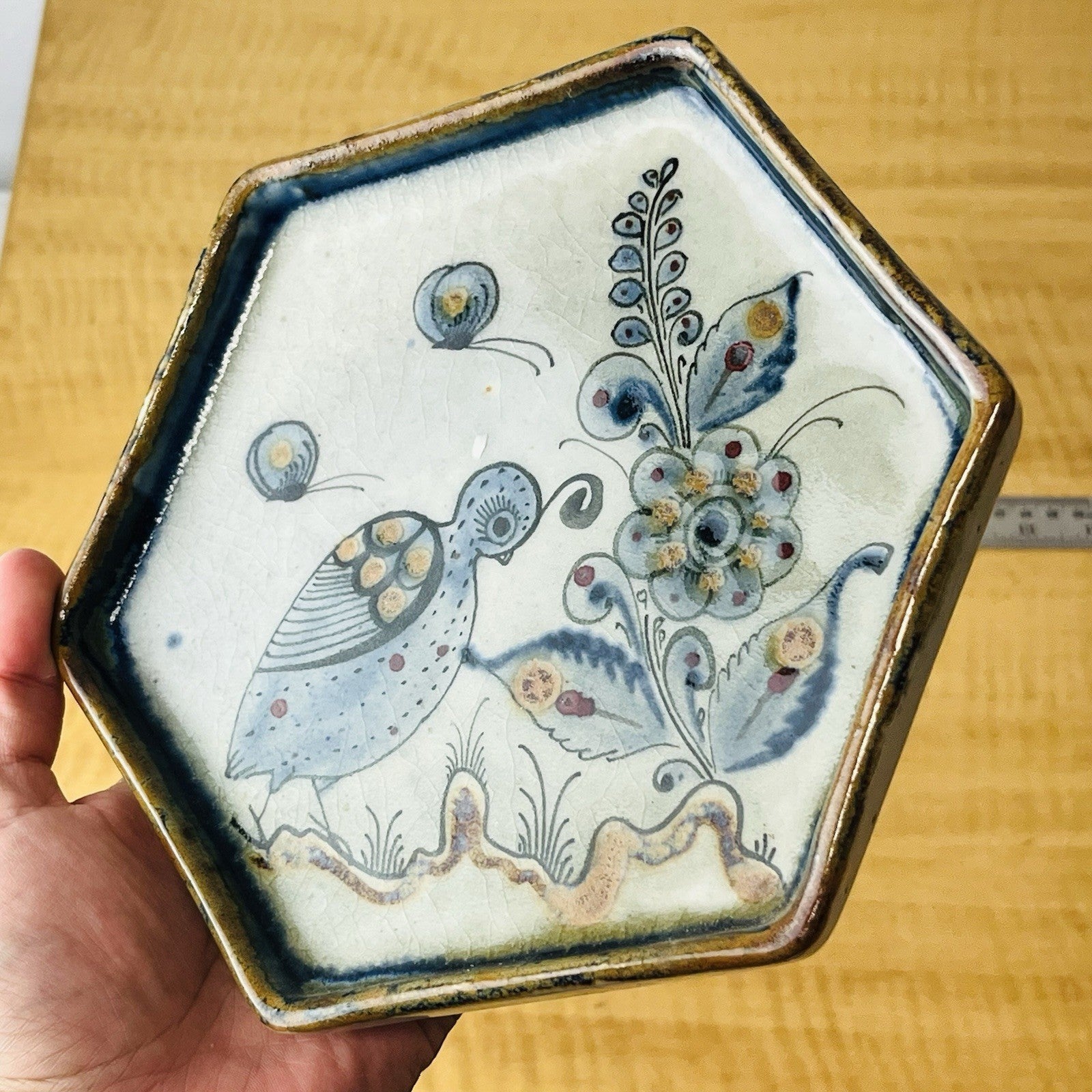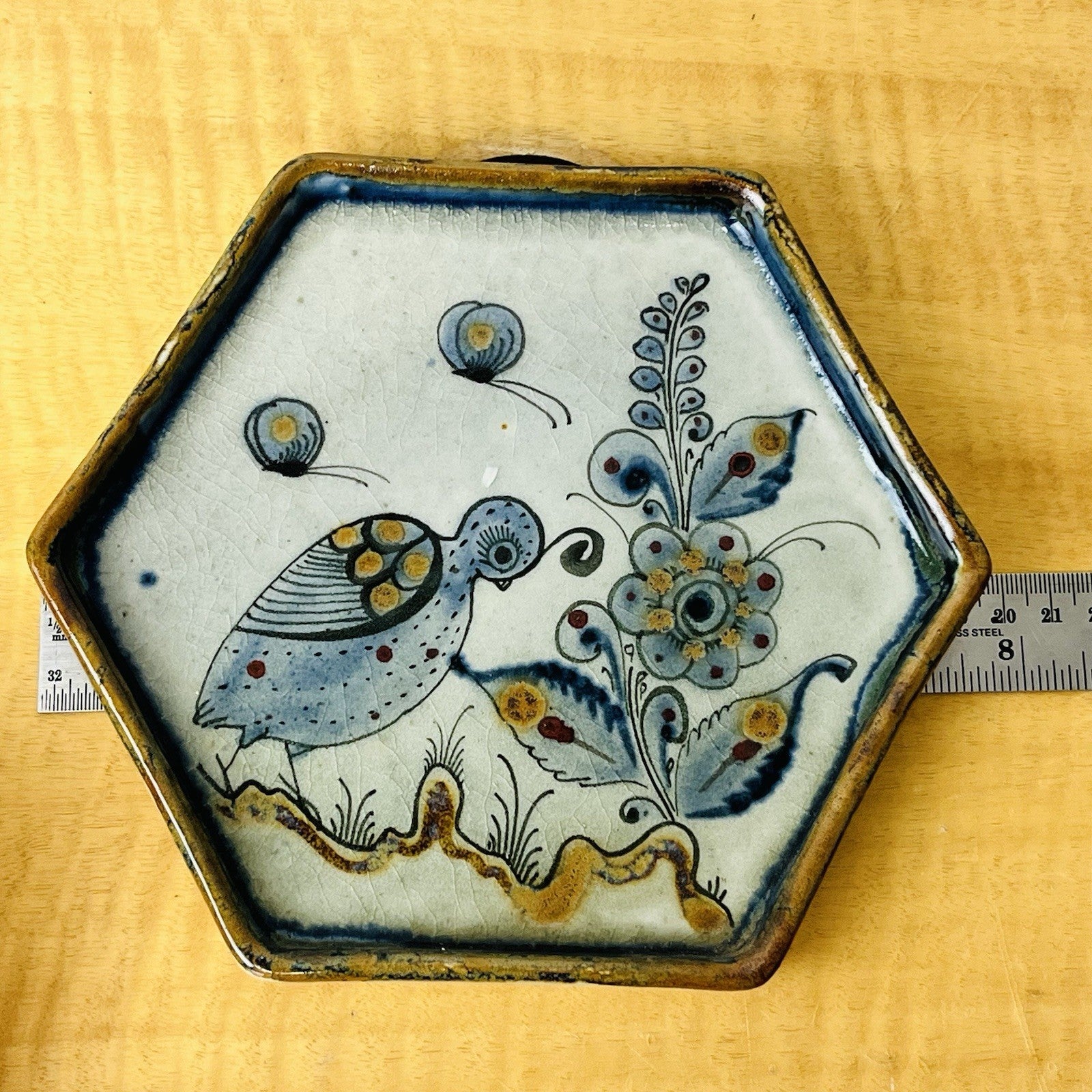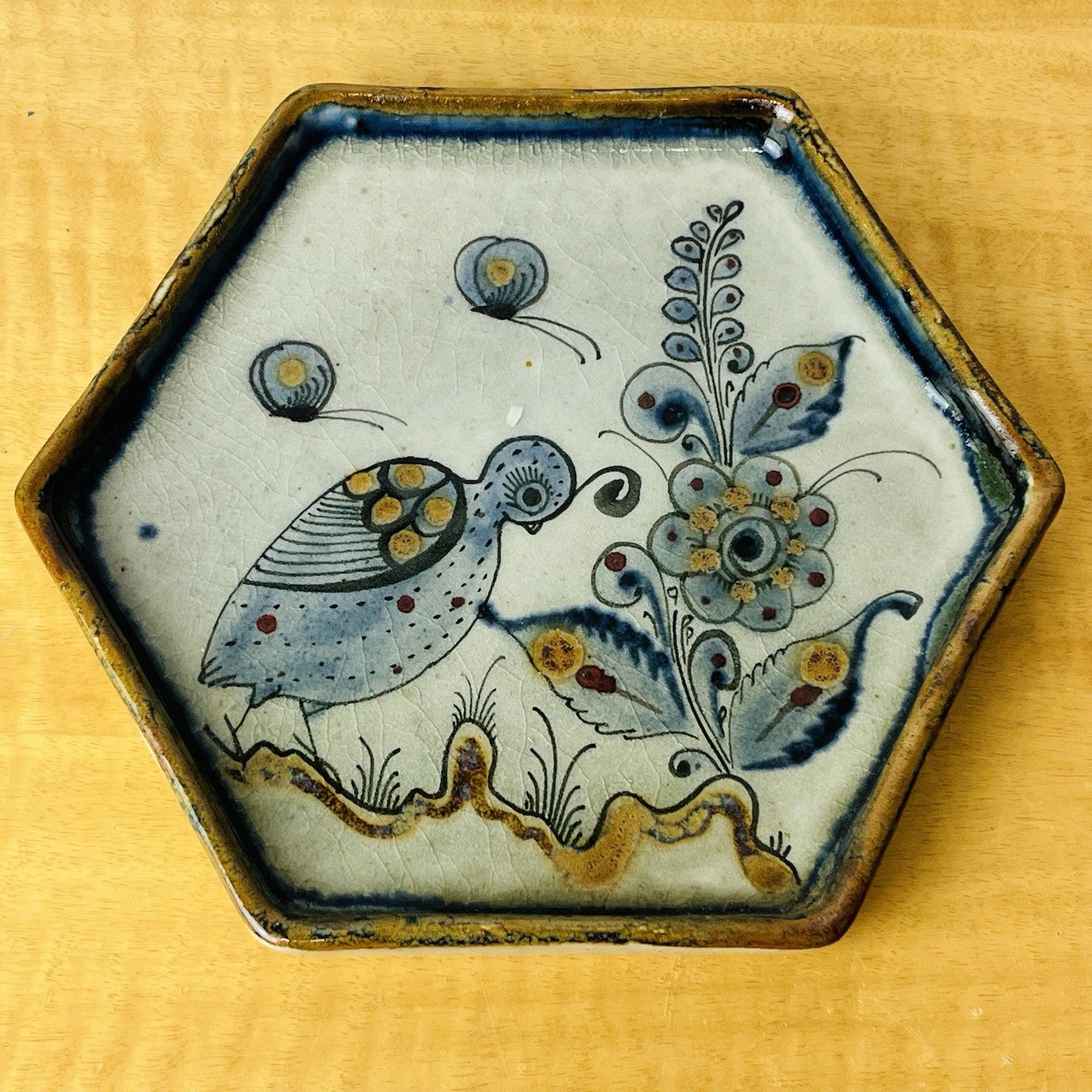 Ken Edwards Pottery Hexagonal Plate Blue Bird El Palomar Mexico Folk Studio Art