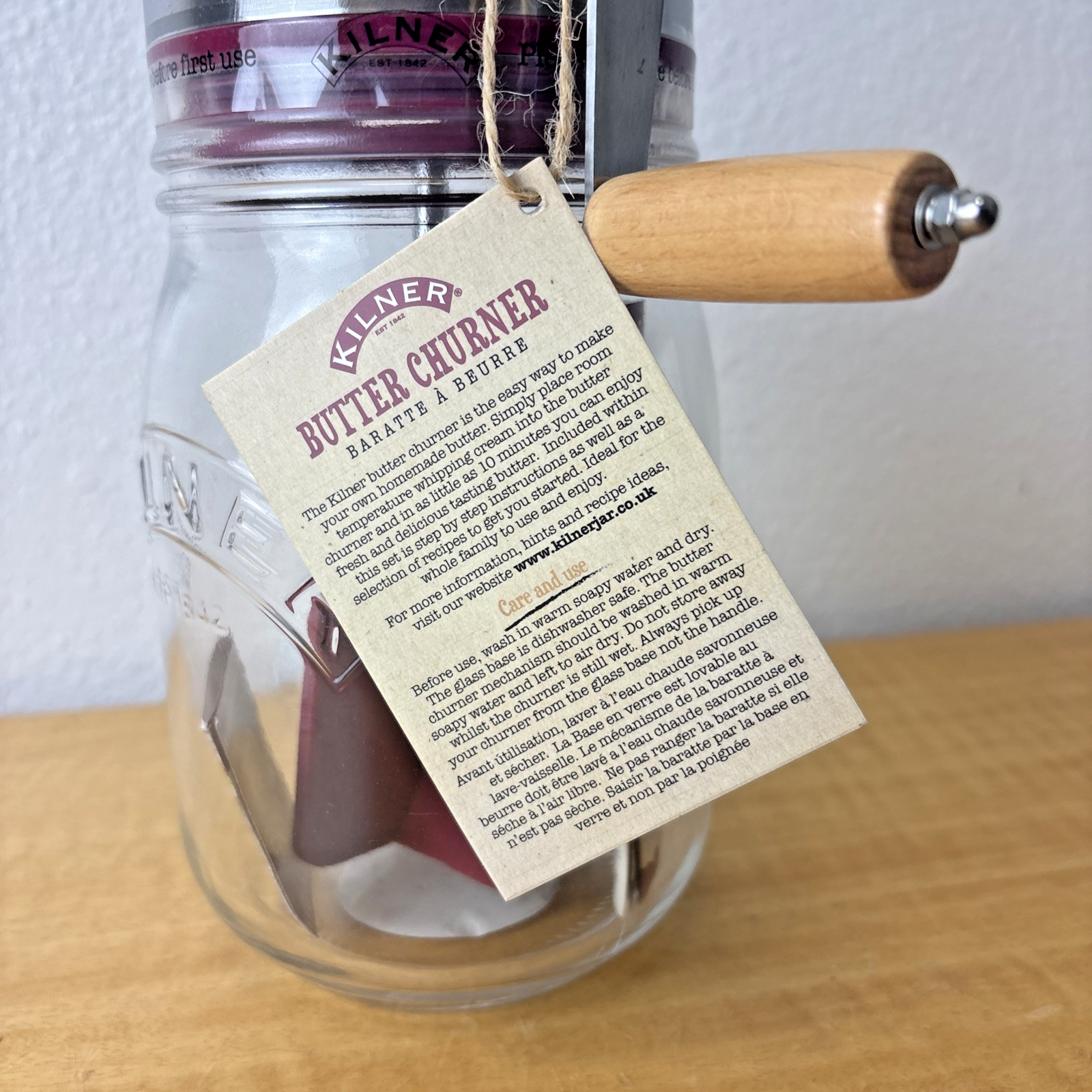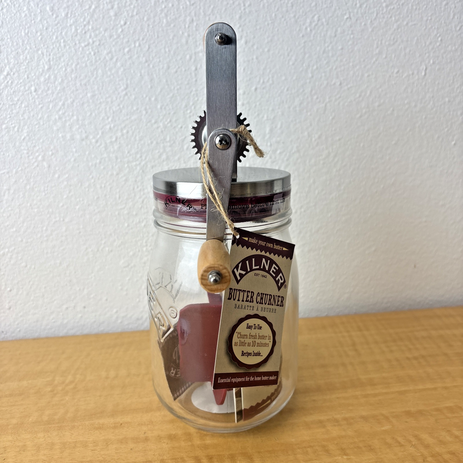 Kilner Homemade Butter Churner – One Quart Glass Jar w/ Wooden Handle