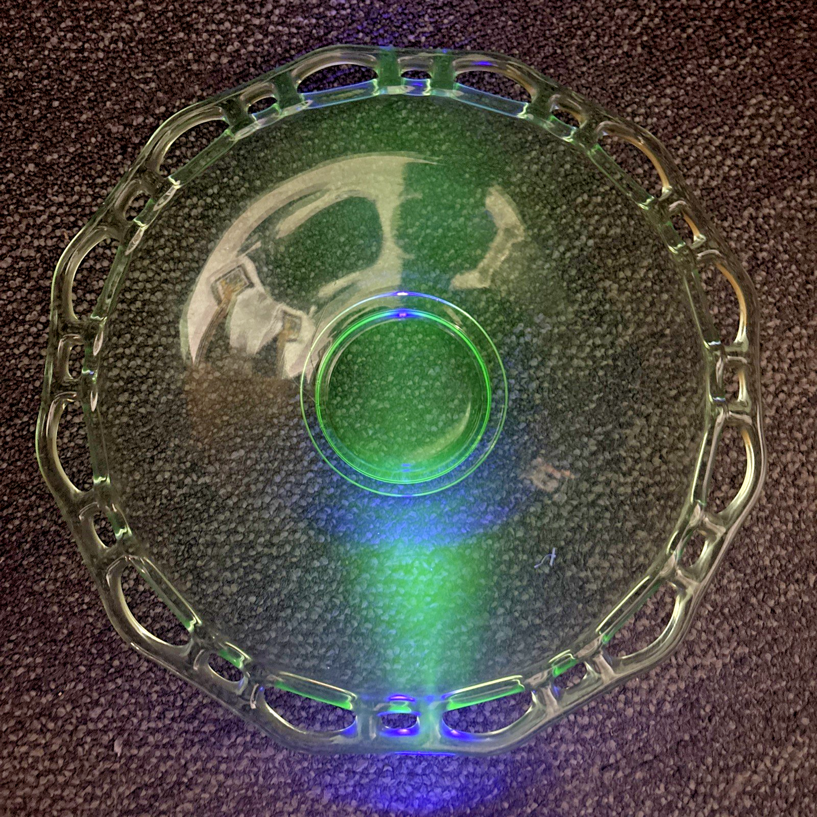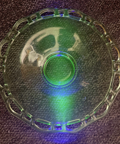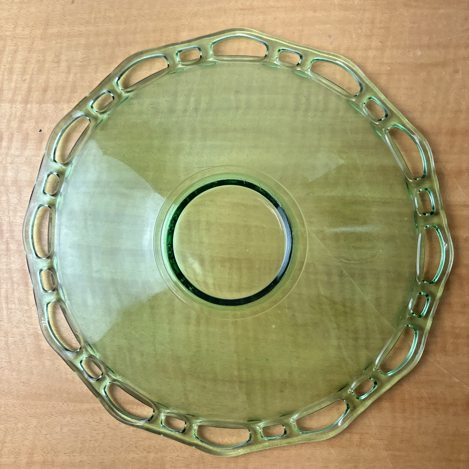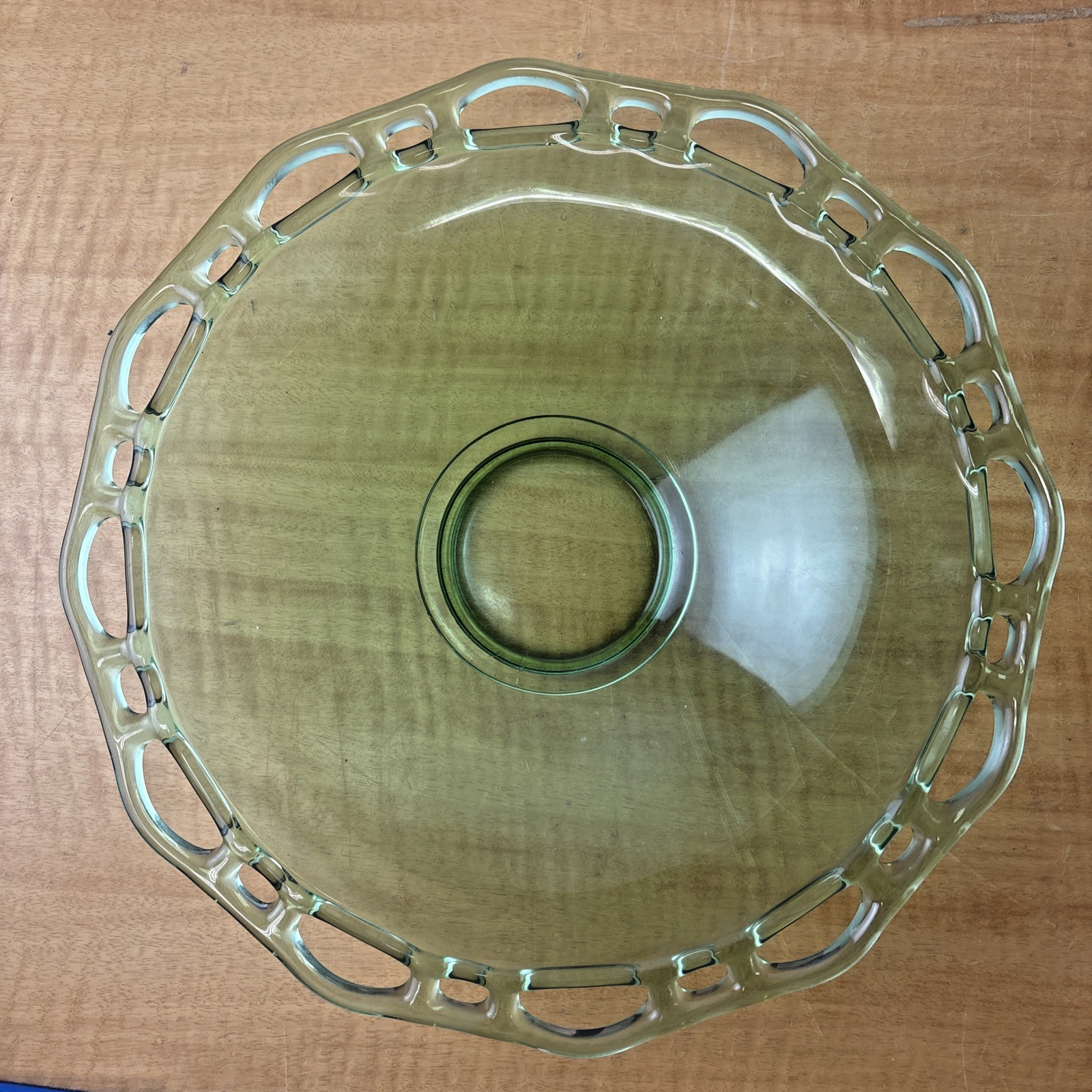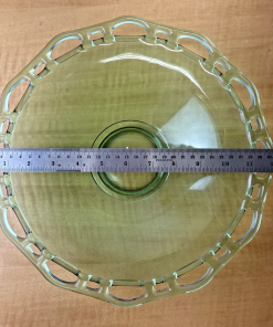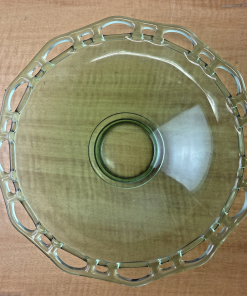 Lancaster Open Work Green Uranium Glass Lace 12″ Serving Dish Table Fruit Bowl