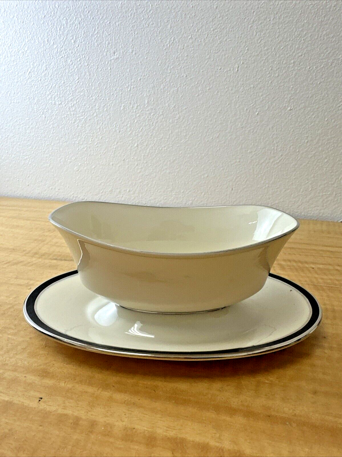 Lenox BLACK ROYALE Gravy Boat & Attached Underplate