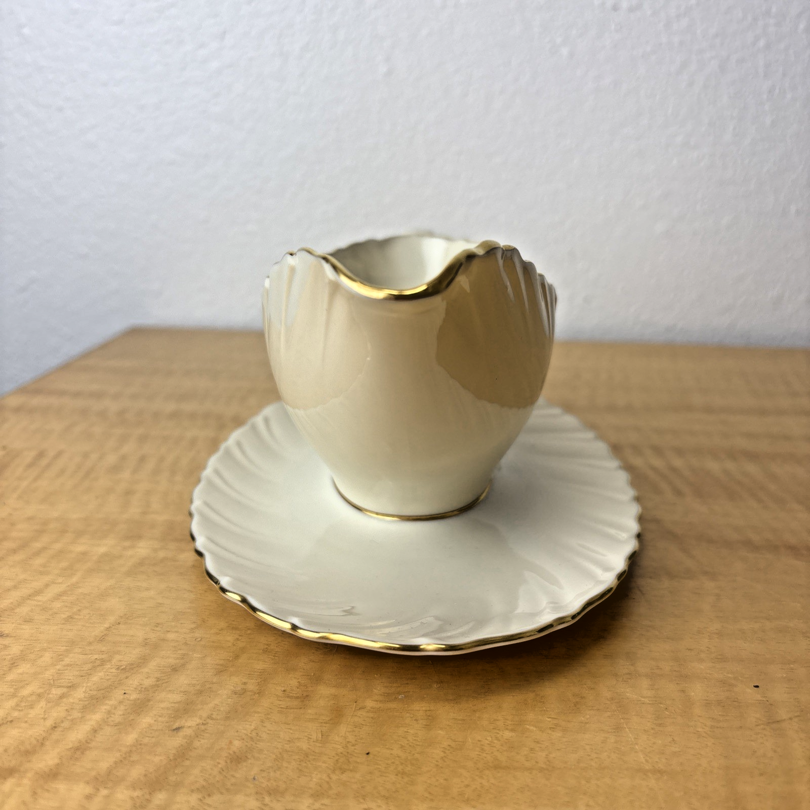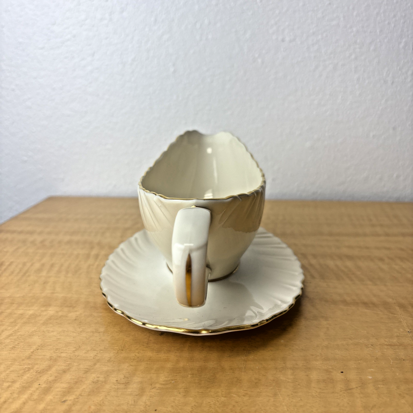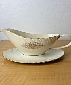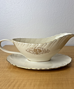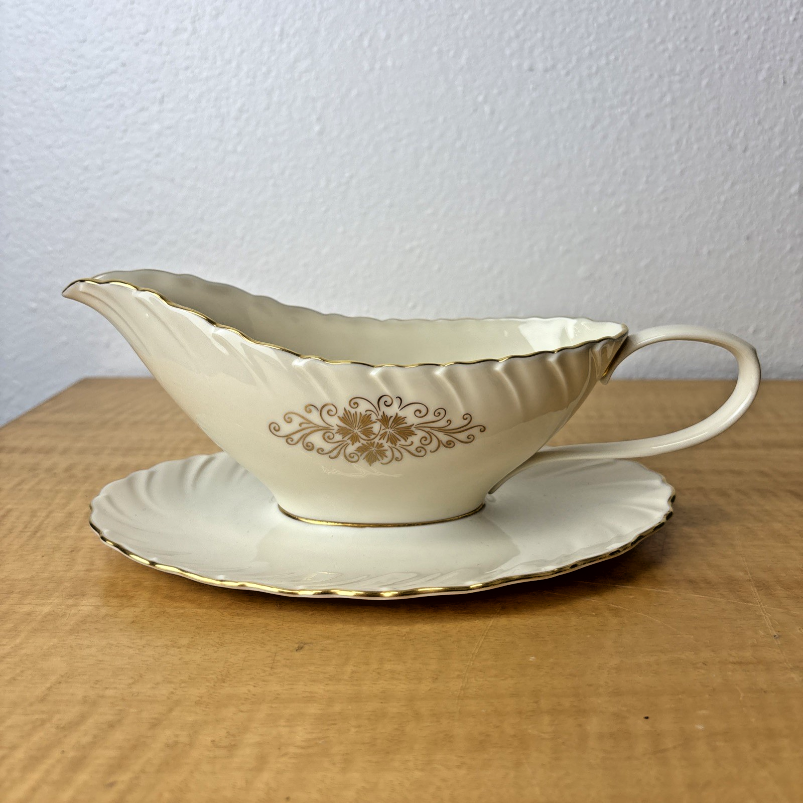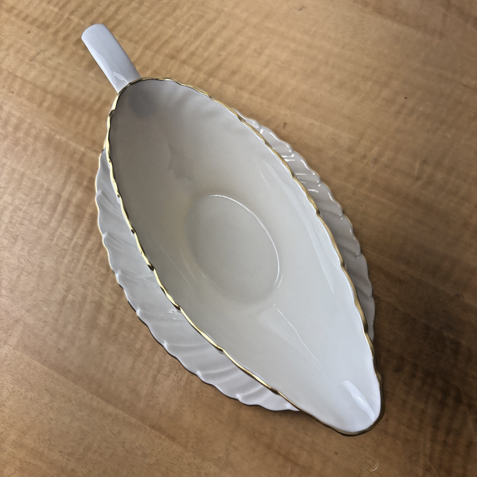 Lenox “Orleans” Pattern Gravy Boat w/ Attached Under Plate Scalloped Edges Gold