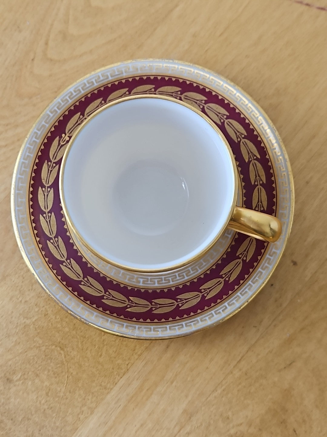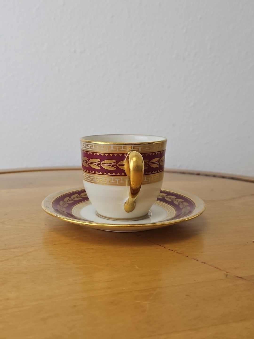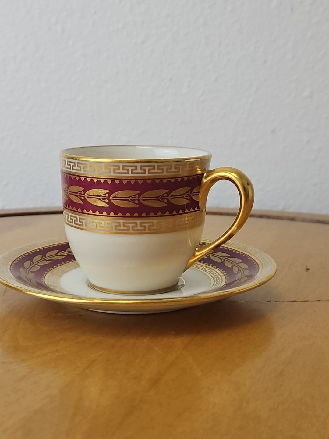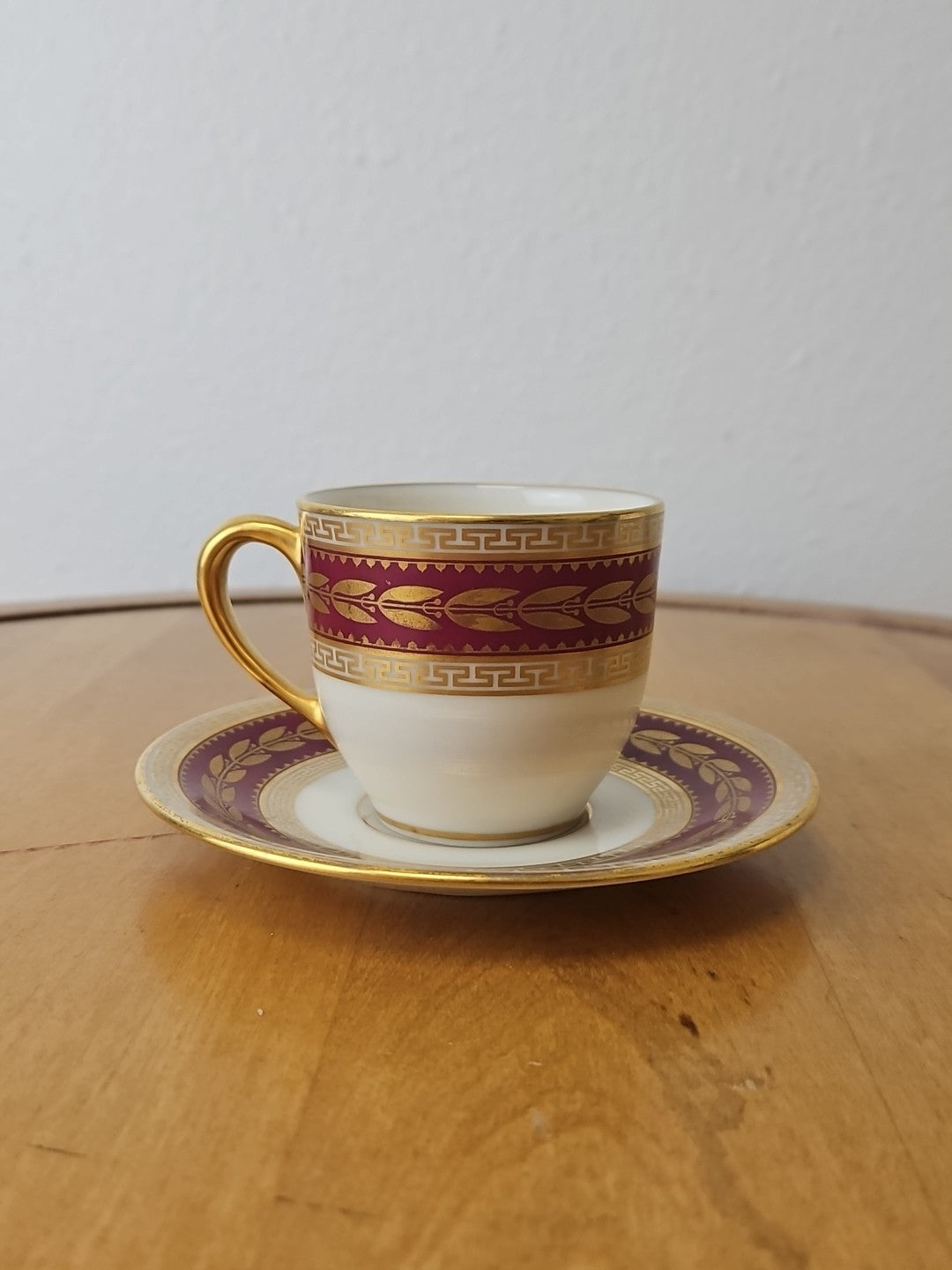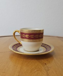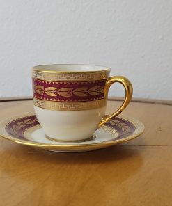 Lenox USA Demitasse Coffee Cup & Saucer set S &G Gump Gold Laurel Maroon
