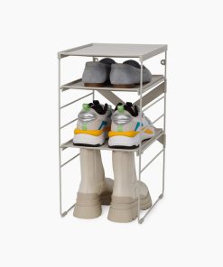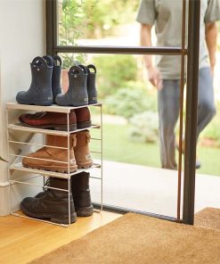 Boots, shoes, trainers – whatever your style, simply adjust to fit your collection. Really easy to assemble, the shelves clip onto the sturdy steel frame, while additional racks can be stacked on top of each other and screwed to the wall for more stability. This design stores up to four pairs of shoes.