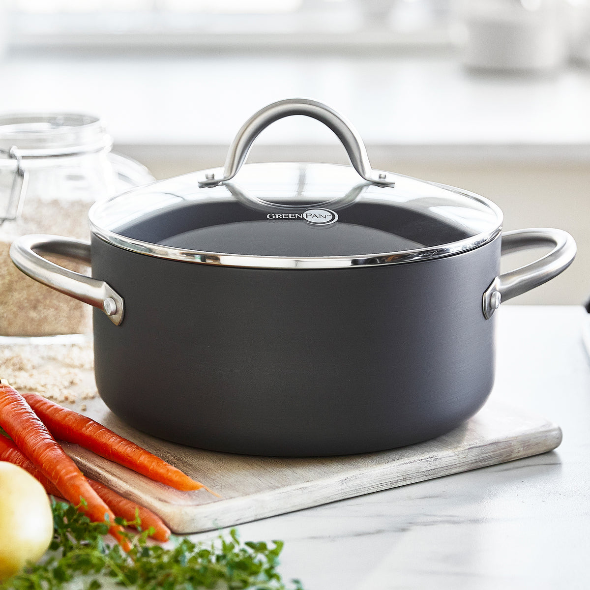 Made to multitask for breakfast, lunch, or dinner, this versatile 5-quart stockpot with lid turns out hearty soups, flavorful stocks, tender braises and more. Plus, our signature healthy ceramic nonstick coating delivers stress-free, healthier meals – every time.