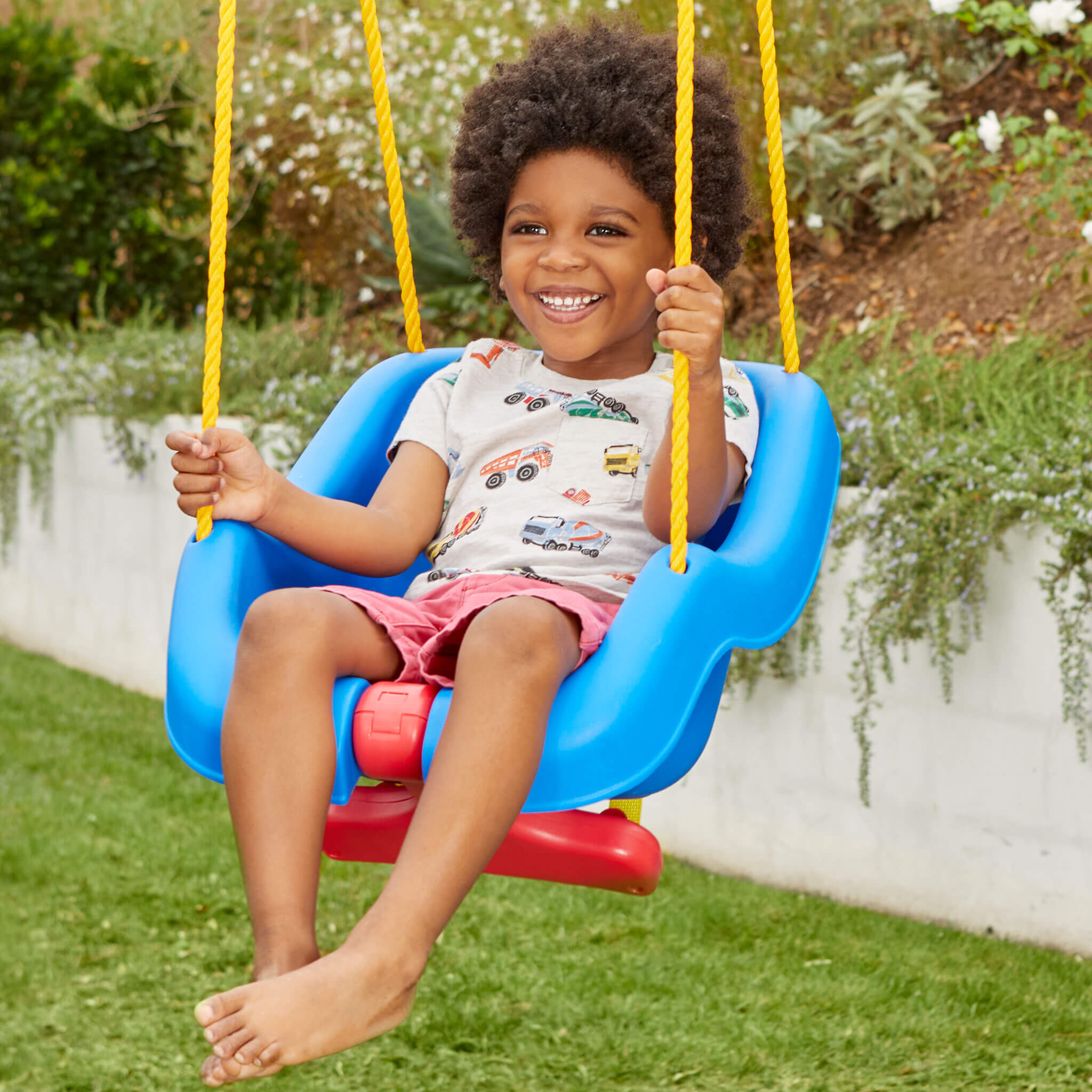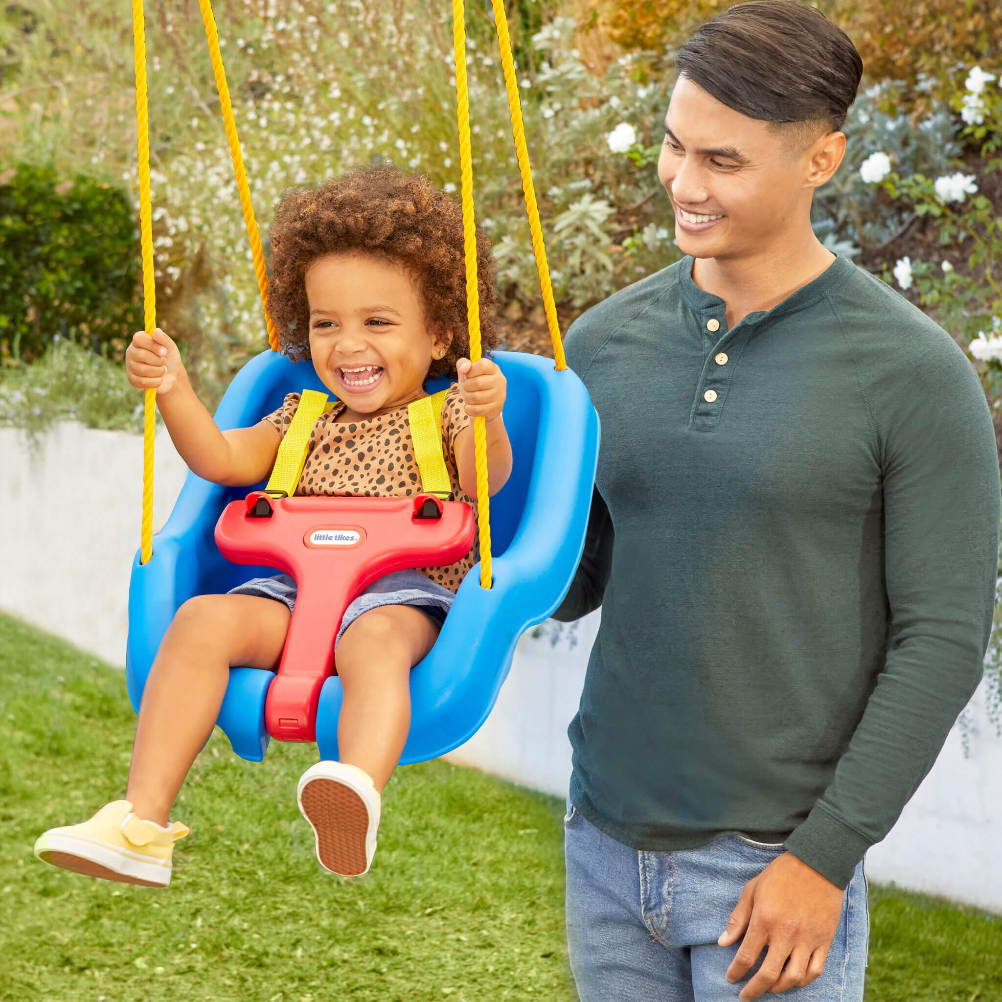 The Little Tikes 2-in-1 Snug ’n Secure Swing is for children who absolutely love to swing. This outdoor baby swing is the perfect addition to any swing set. It’s a baby swing and a toddler swing in one!