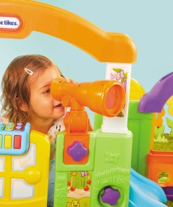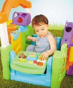 For more fun games, use the window planter for ball drop play. The mailbox allows children to pretend to receive ‘mail’ as well as learn shapes and colors. The Tap-a-Tune Piano has colored chimes and buttons to encourage your child to experiment musically.
