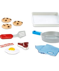This sleek, modern pretend play oven is packed with interactive features: stovetop burners that light up, clickable buttons, a working oven light, a removable oven shelf, and turning burner dials. Plus, it makes realistic sounds like burners igniting, water boiling, sizzling, timers ringing, and more to really extend the pretend play for hours. Pretending to cook and do other chores helps kids gain a sense of responsibility, an important part of social-emotional learning.