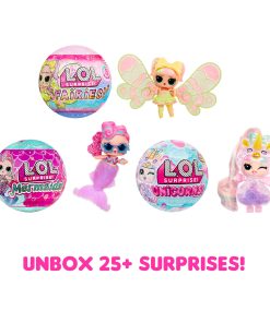 The surprise party unboxing includes a surprise POP of confetti in every ball. Unbox 9 layers of surprise in each ball, including an LOL Surprise doll with a water surprise. Feed or bathe your doll to reveal a water surprise. Will your doll cry, spit, tinkle or color change?
