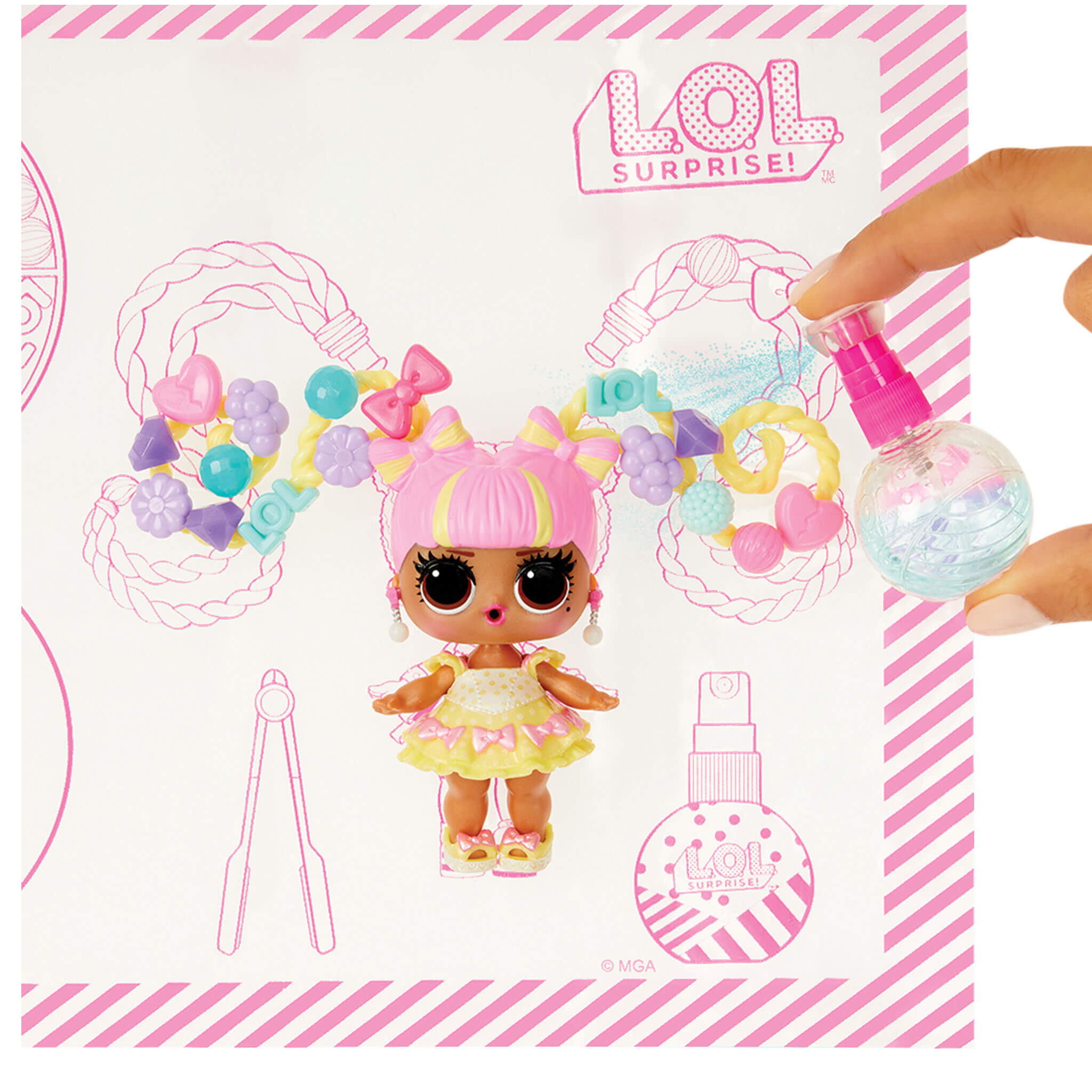 Discover what’s inside this salon playset including a LOL Surprise Hair Beads doll, 100 beads to customize your doll’s hairstyles, hair ties that you can really use, mirrors for you and your dolls, and more surprises!