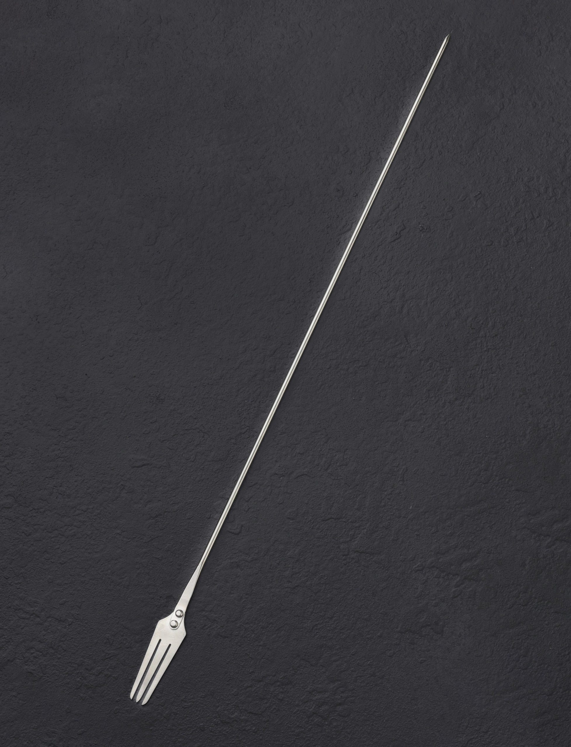 Crafted by hand from stainless steel, the Long Cocktail Fork is perfect for behind the bar, seafood counter or in the kitchen, featuring a pointed tip at the end of the handle to skewer with precision, and a 3-prong fork at the opposite end. At over 11” long this tool can be a bartender’s best friend while also being well suited to the more traditional cocktail fork tasks of extracting crab or lobster meat from the shell or scooping escargot, among endless other uses.