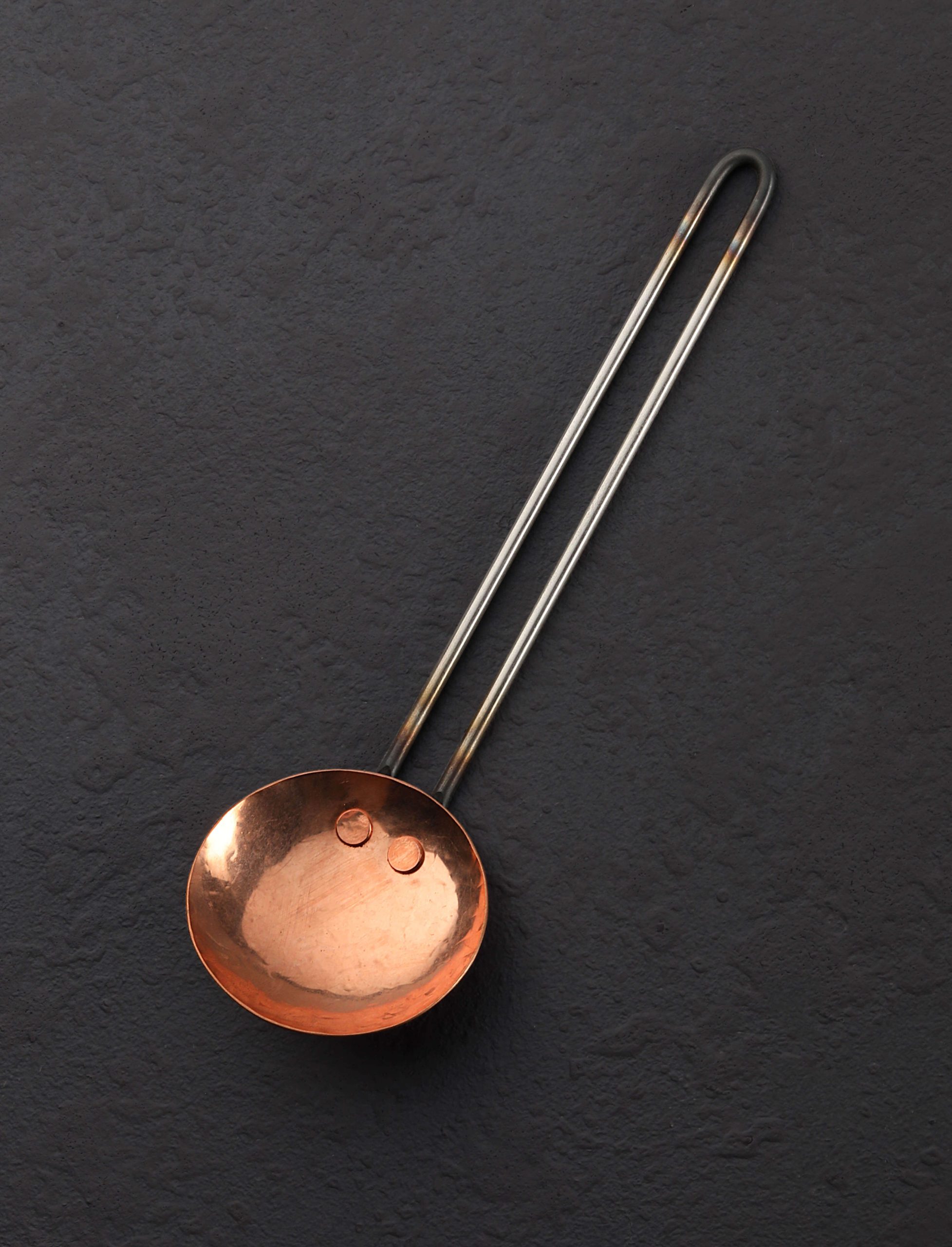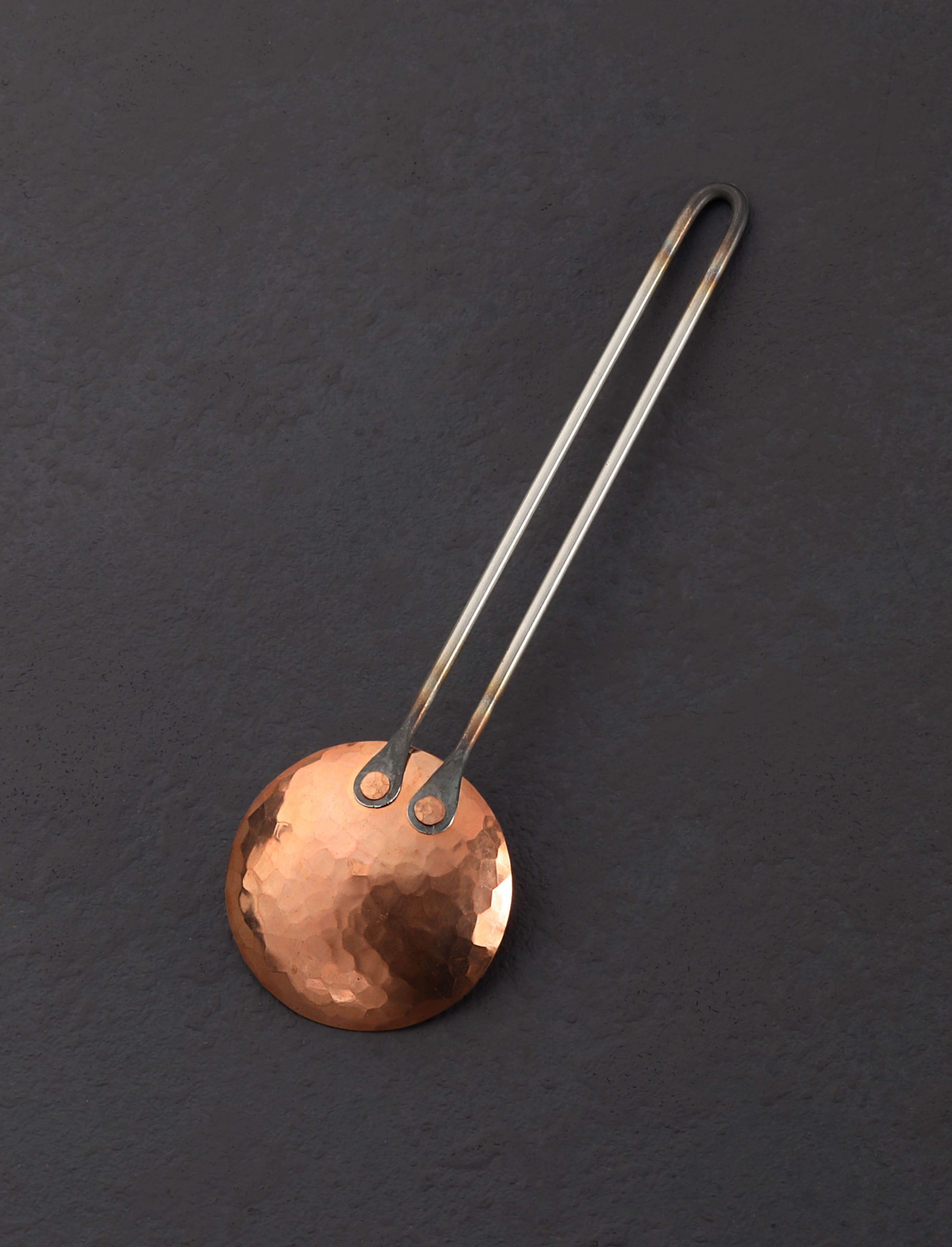 Beautiful, lightweight and hand-hammered in Virginia by Park Swan of Black Swan Handmade, the Loop Copper Coffee Scoop is an heirloom quality creation of simple form and classic aesthetic. The loop handle in American-sourced stainless steel is easy to grip and the nicely weighted 2.25″ / 57mm round copper bowl give the scoop an excellent feel that makes coffee time even more of a joy.