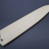 These Saya are made of Magnolia wood, which resists water and shrinkage well. Each Wooden Saya is carefully handcrafted to fit each blade and comes with a Black Pakka Wood pin, which is used to secure the blade within the wooden Saya. Many of our customers enjoy spending time together with their fine Japanese knives and fine wooden Saya.