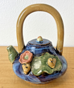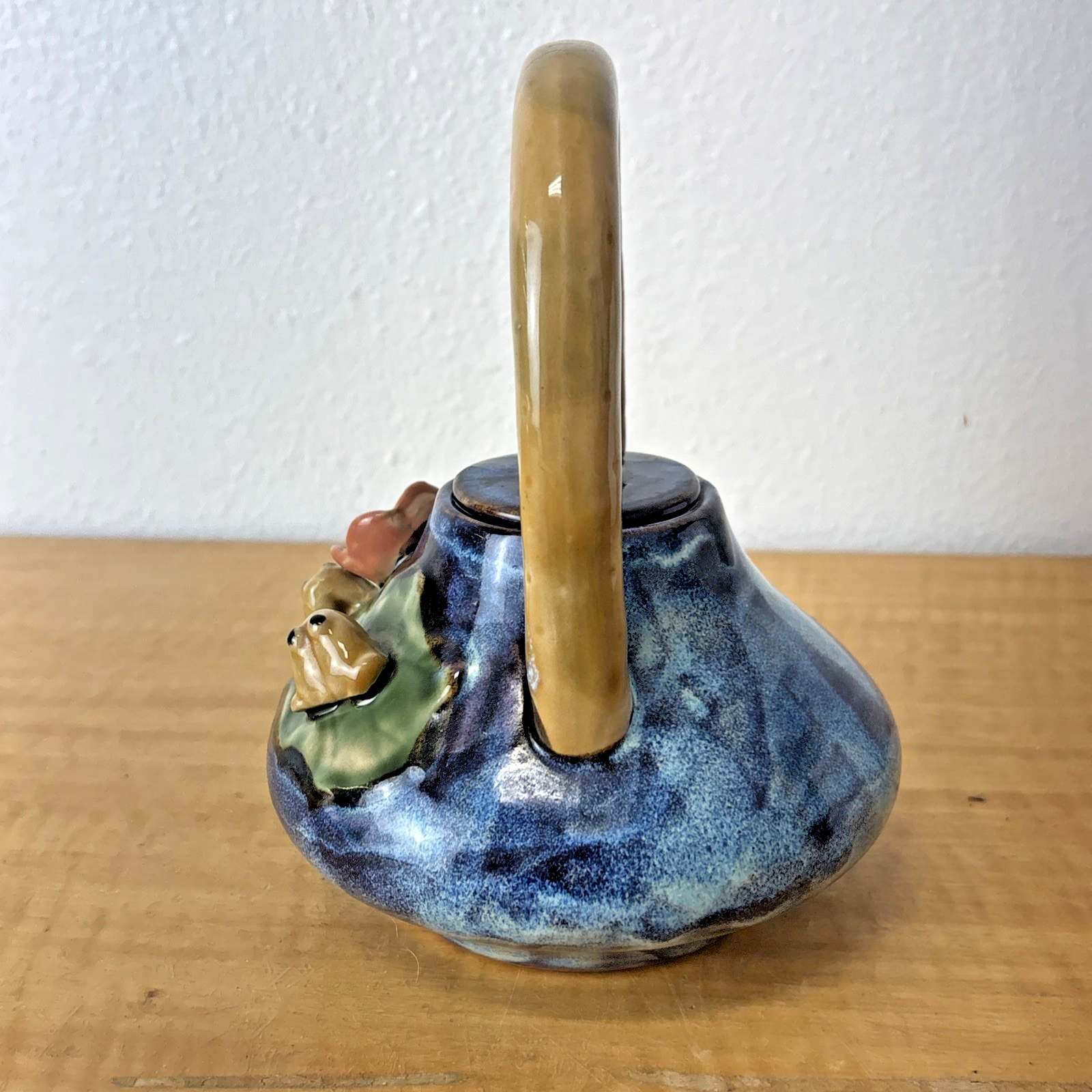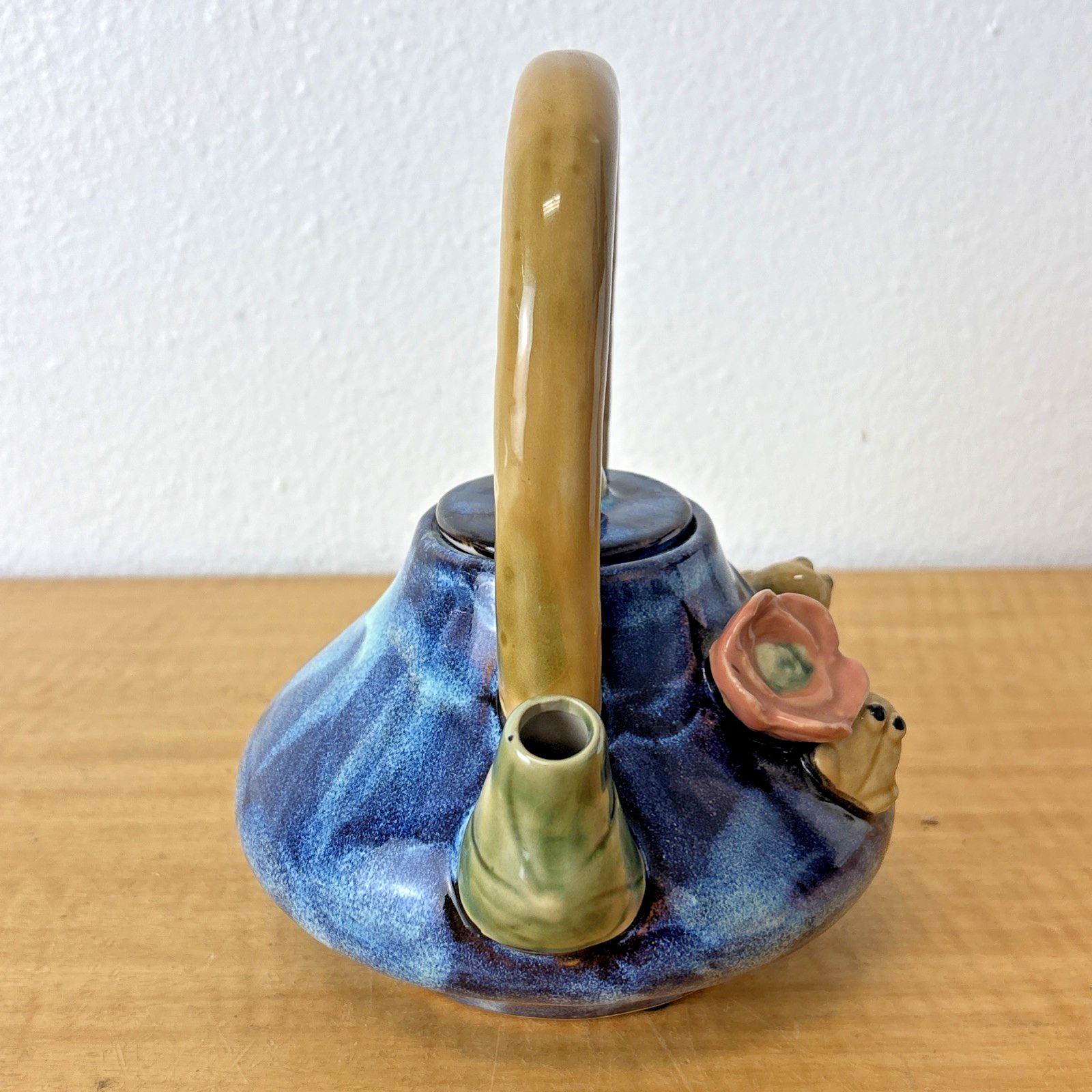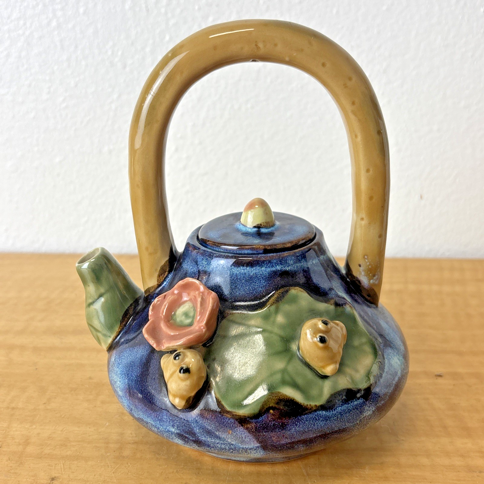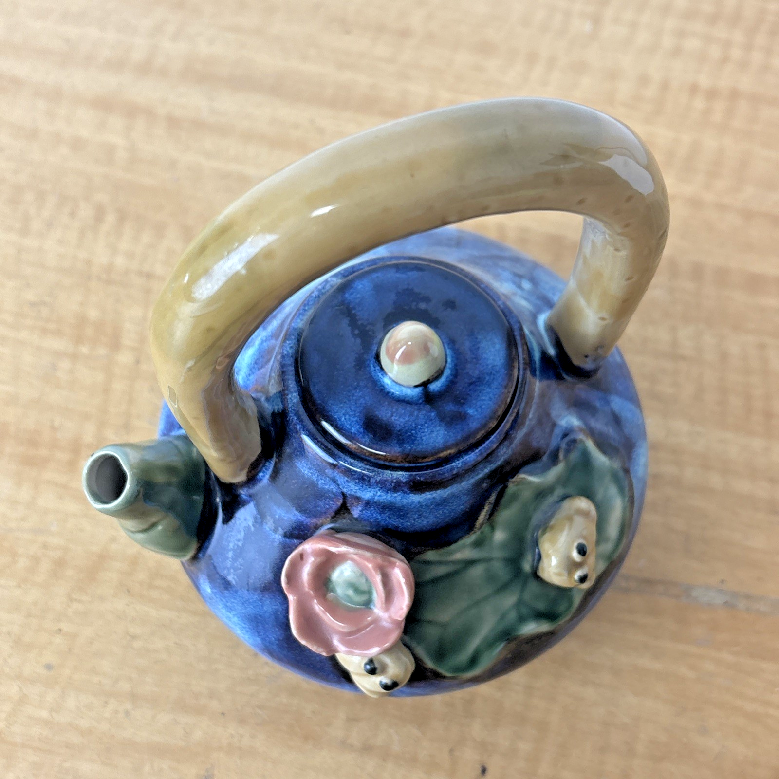 Majolica Style Frog Lily Pad Teapot Ceramic Frog Teapot Vintage Pond Farmhouse