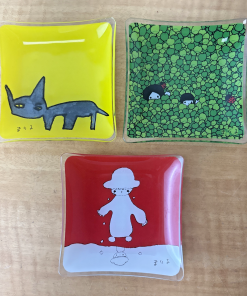 Mariko Miyagi Square Artwork Plate Set of 3 Nemunoki Gakuen