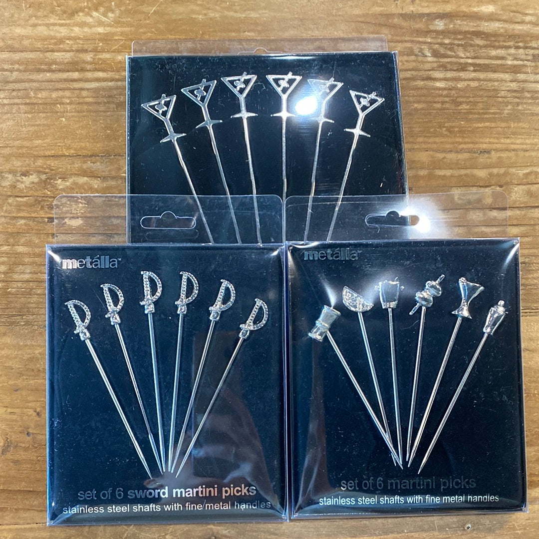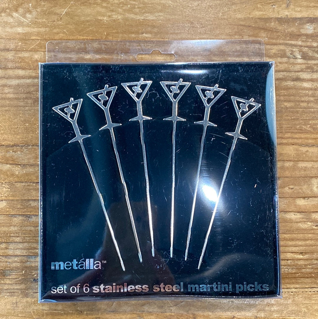 Set of six stainless steel martini picks | Serve the perfect martini with these high quality martini picks | Their decorative design will be the talk of the party