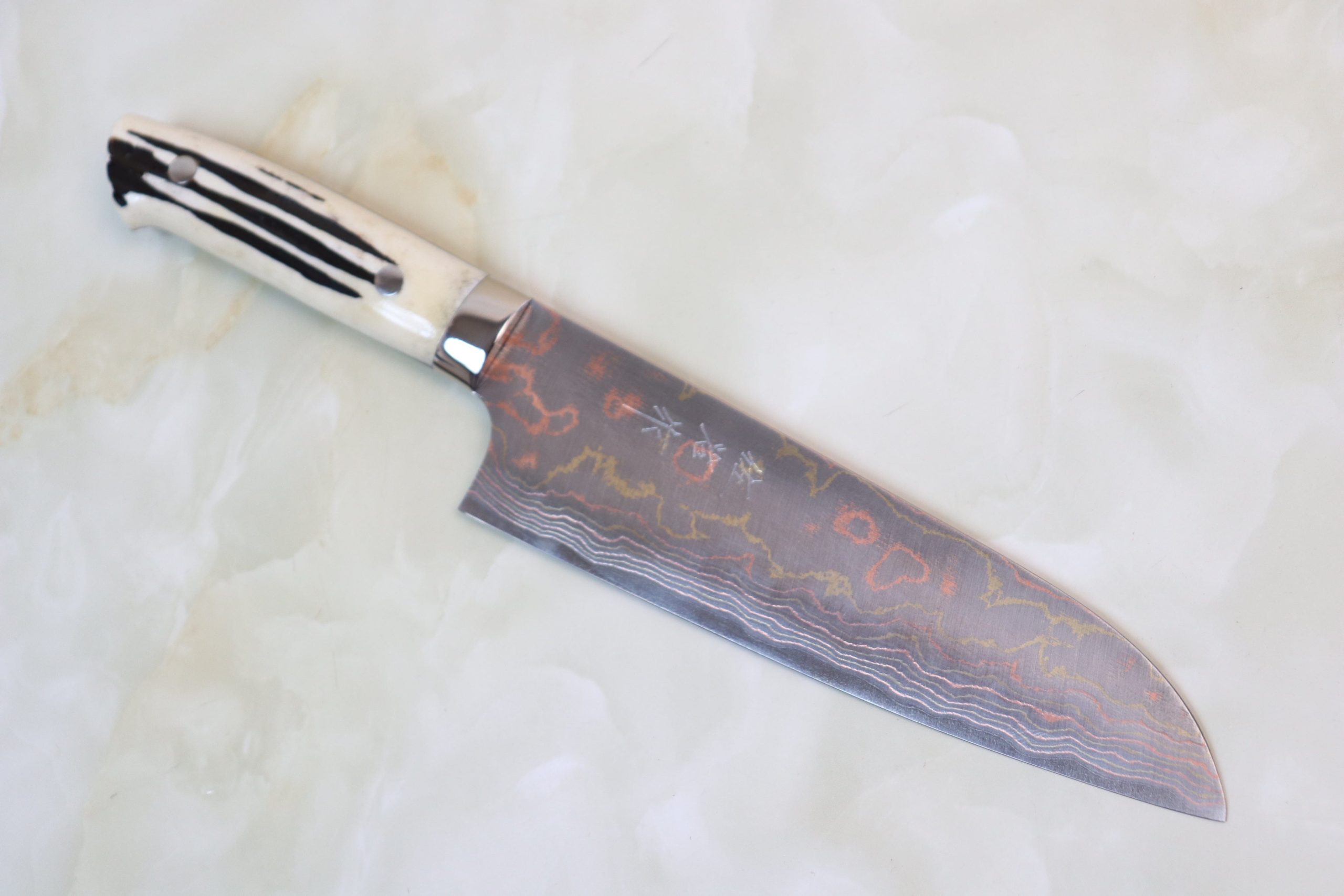 Knife Model: Takeshi Saji Rainbow Damascus Series Santoku