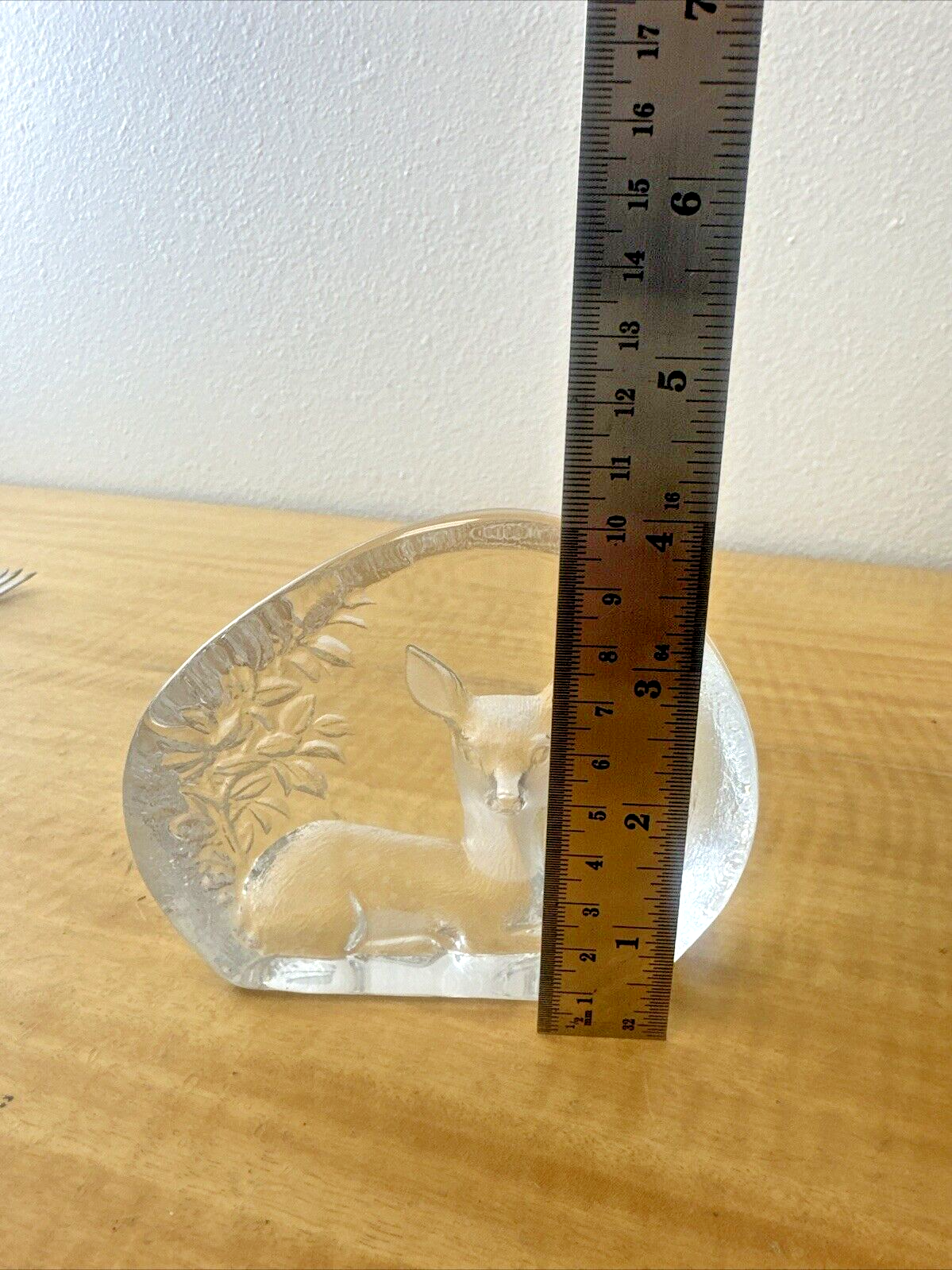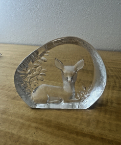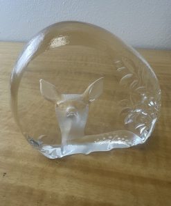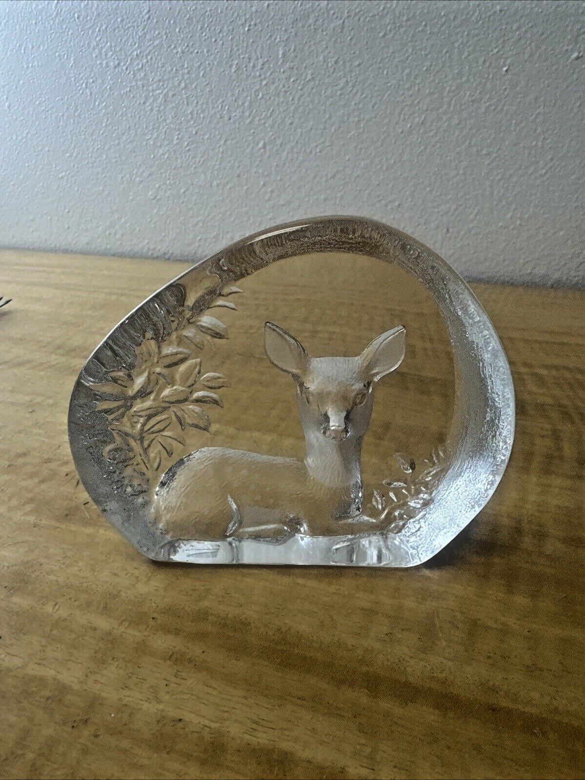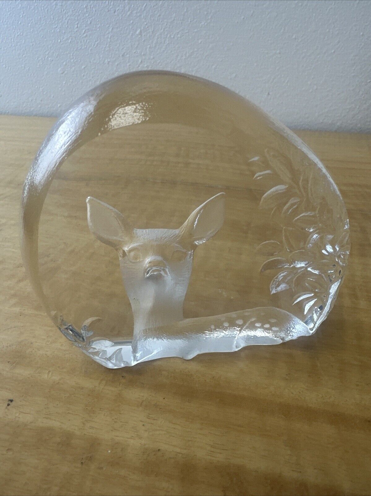 Mats Jonasson Lead Crystal Swedish Art Glass Paperweight Baby Fawn/Deer
