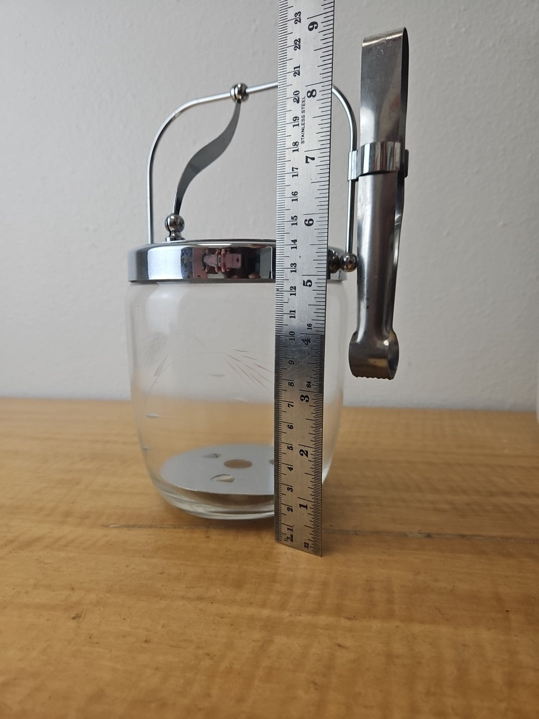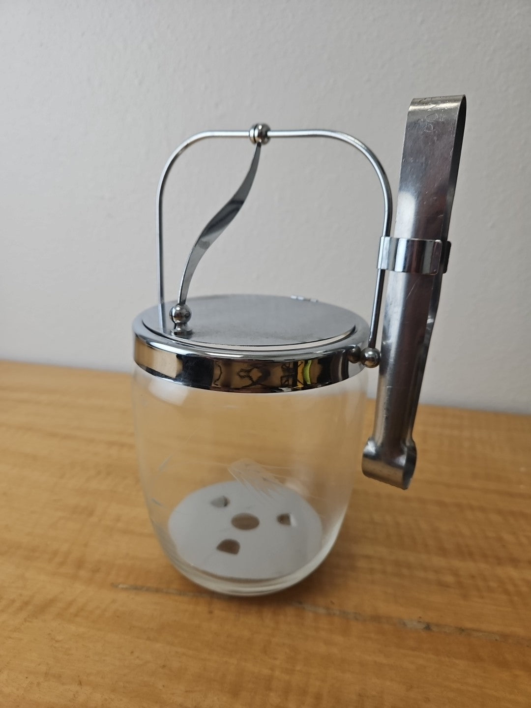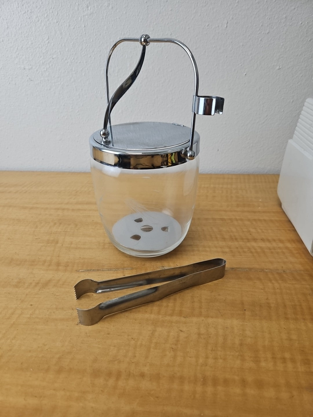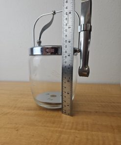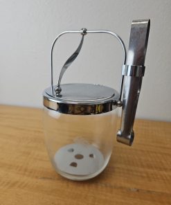 MCM Etched Metal Chrome Glass Vintage Ice Bucket Barware Hinged Lid And Tongs
